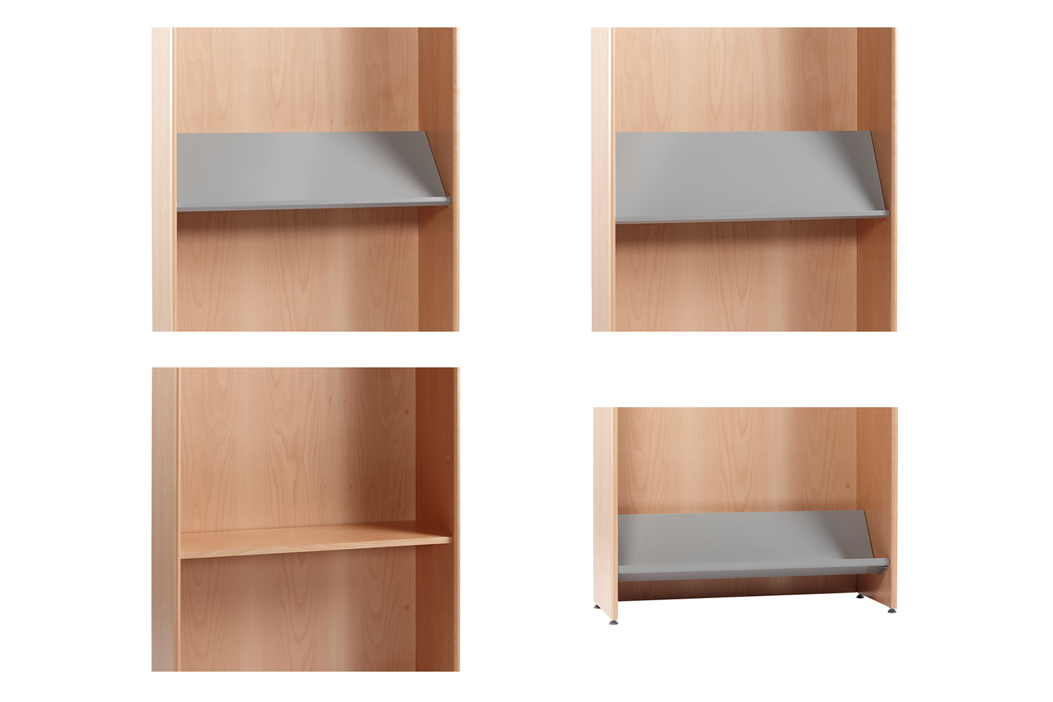 This shelving system provides a framework for building your own personalised shelving system that fits the requirements of your library and target group. This can be done by replacing shelves with function components.