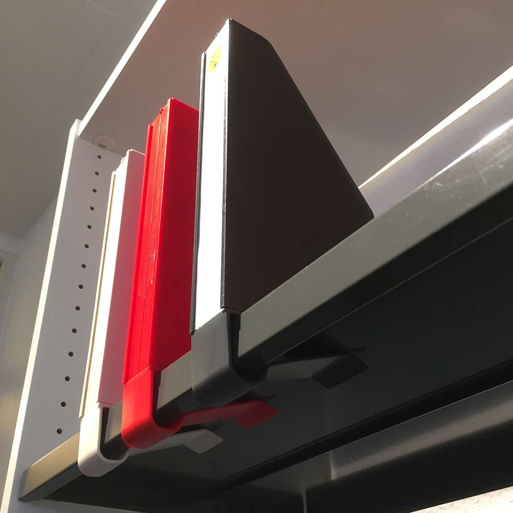 The index block consists of three parts: 2 sides and one base plate with shelf clip.