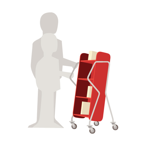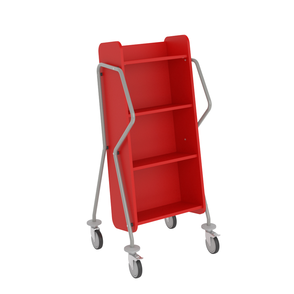 Ergonomic, user-friendly, single-sided book trolley with 4 shelves. Generous amount of clearance between shelves to accommodate larger books.
