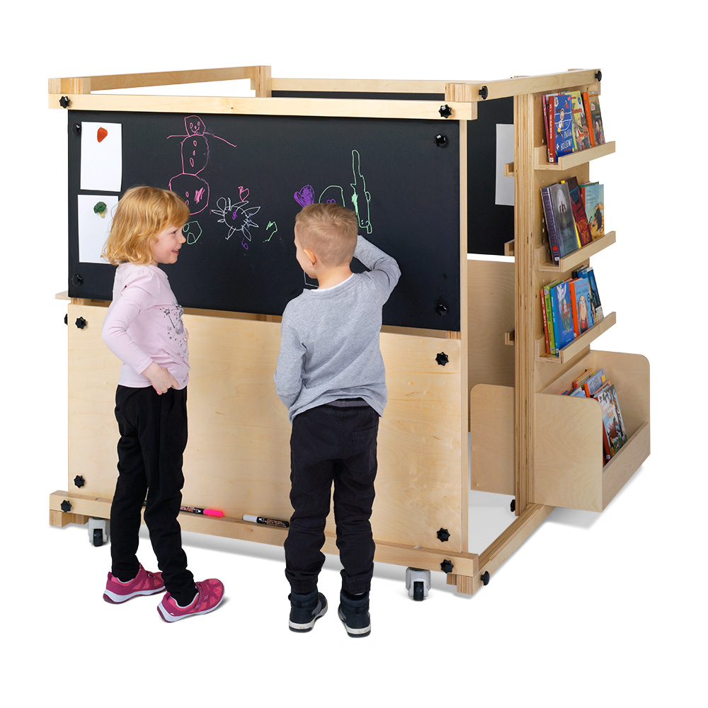 “The children play enthusiastically out in the library kiosk. They play library, bookshop and school. They have a lot of fun, and the kiosk is a natural gathering place for the youngest.”