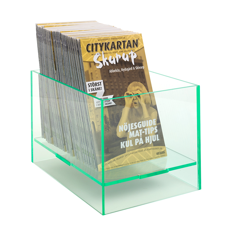 One box, two uses - use with the opening at the top and fill with different themed products or giveaways. Turn it around and place opening at the bottom and use it as a platform to display brochures, books, journals and magazines on top.