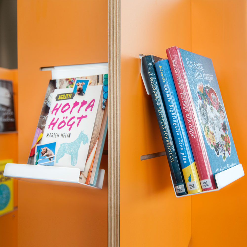 The displays are easily moved around to create flexible display solutions for books, AV-media such as CD/DVDs, magazines, brochures, etc.
