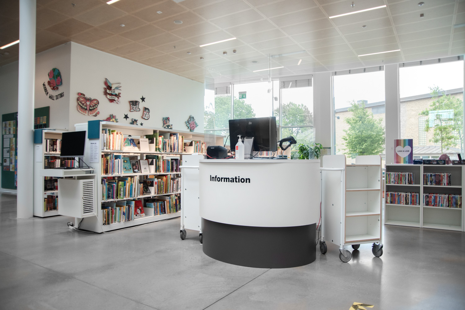 This book trolley can be used as a mini shelving system that can be moved around in the library where needed.