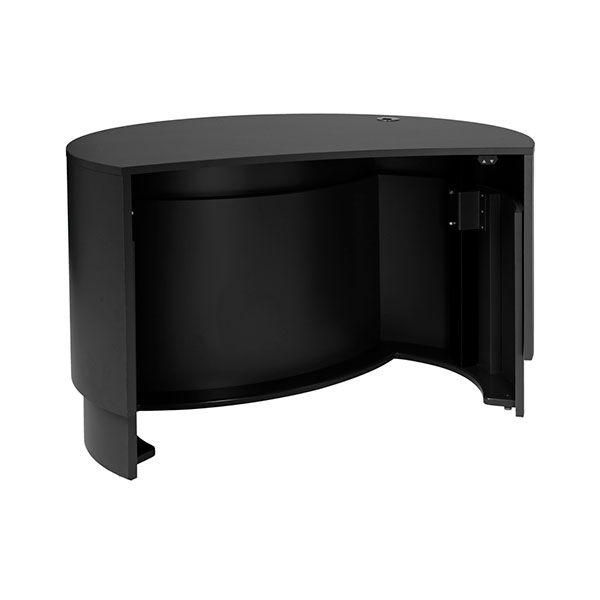 The height adjustability (electric) meets many health and safety guidelines and the recessed front with increased accessibility allows the visitor to come closer regardless of whether he/she uses a wheel chair (low position) or a rollator (high position).