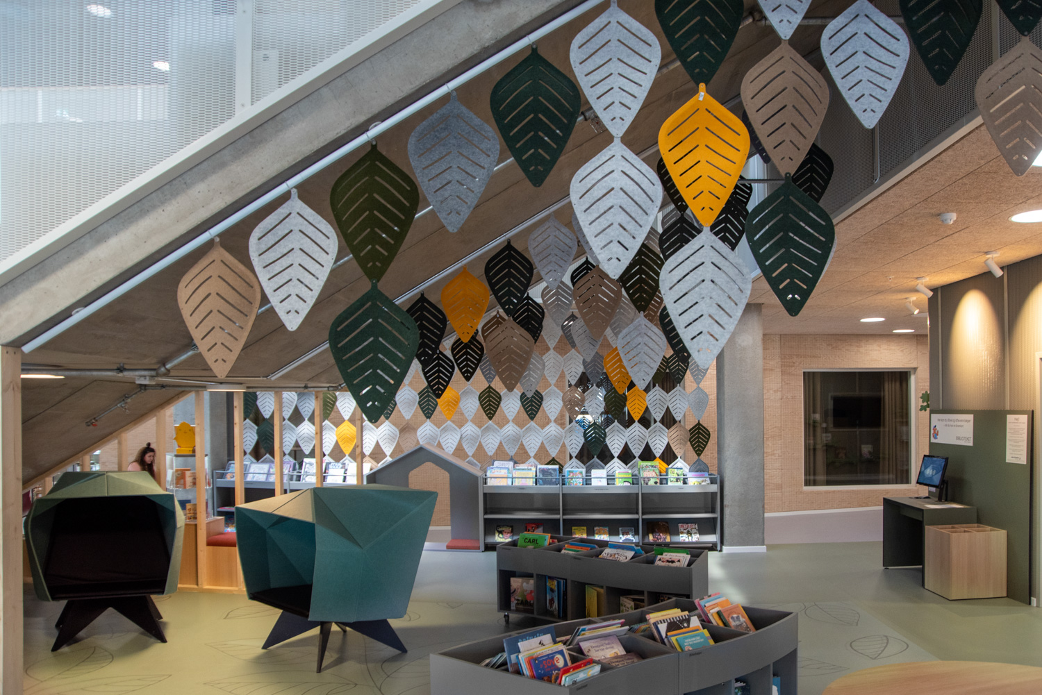 When designing biophilic environments in libraries, the fabrics and textures must fit the overall theme and additional furniture to support pleasant emotions and a feeling of being one with nature. We carefully consider different fabrics and textures in each project.