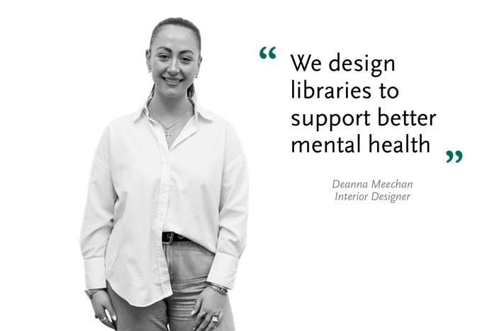 By applying our design expertise to library spaces, you can create library environments that not only support but actively enhance community activities. Thoughtful design can transform libraries into vibrant community hubs where individuals feel welcome, comfortable and engaged. Through flexible layouts, inclusive features and innovative design solutions, you contribute to the overall well-being of the community, making libraries a cornerstone of mental health support and social connection.