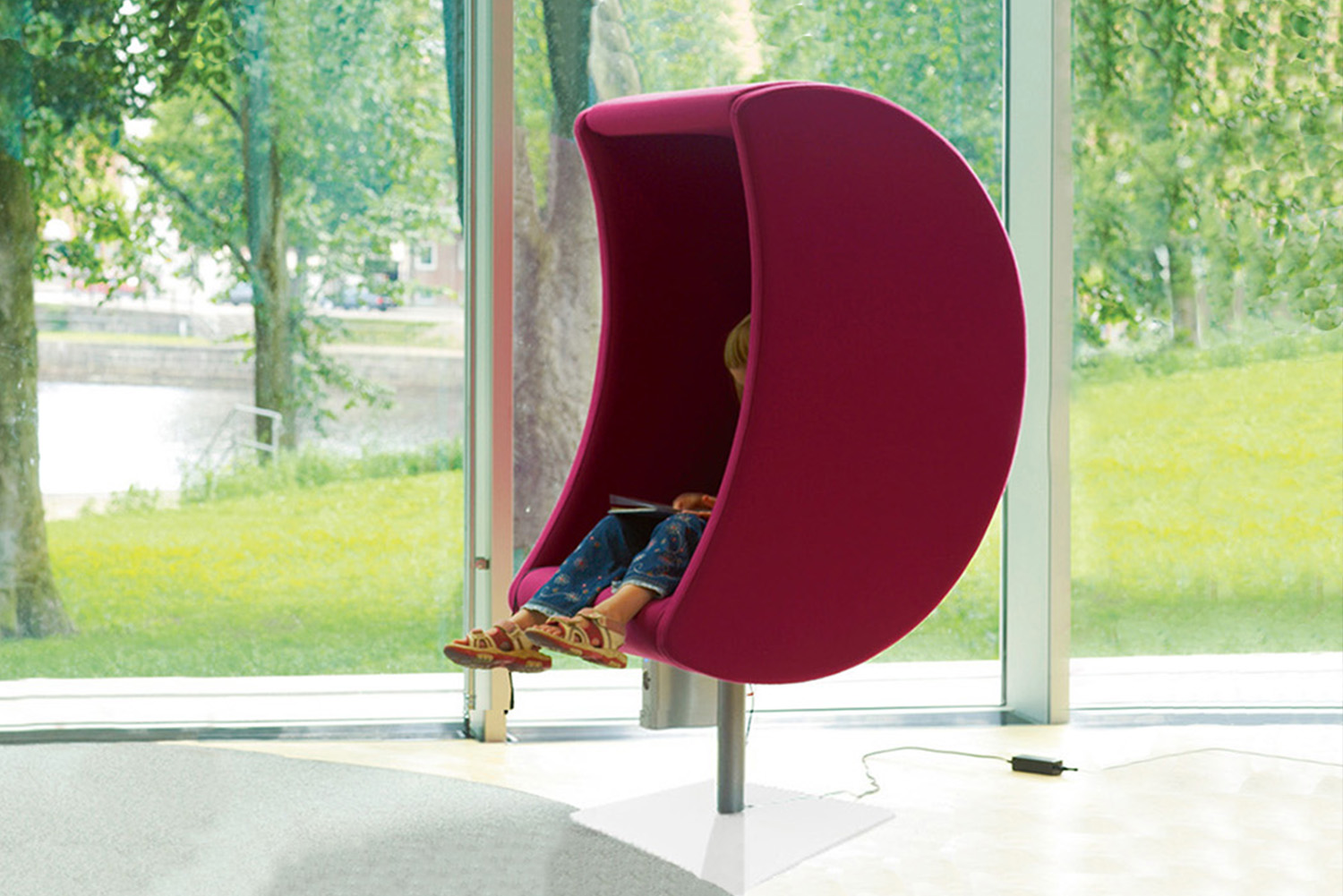 Rooms within the room can be achieved through the use of various furnishings such as round shelving systems and specialised seating cave furniture like Luna Sound Chair, HabiCave, Sensa Lounge Chair and Cocoon Reading Cave.