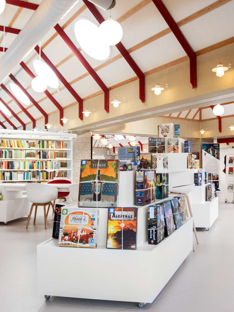 Make sure the exhibition areas appeal to different age groups and use them to highlight themes, projects, non-fiction, games, and much more – inspire them to try something new!