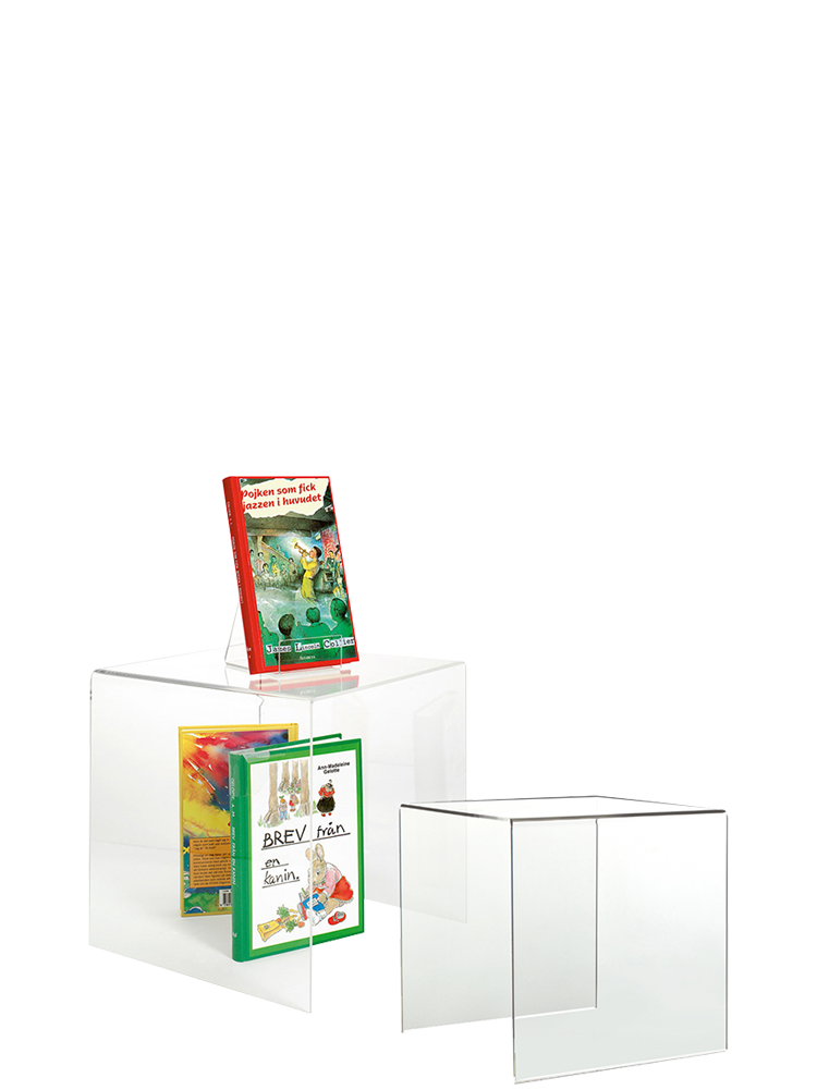 Linnéa acrylic display stand raises the books from the table for better exposure.