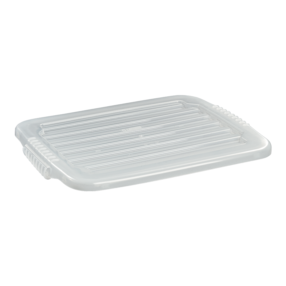 Lid for stackable storage box in PP plastic.