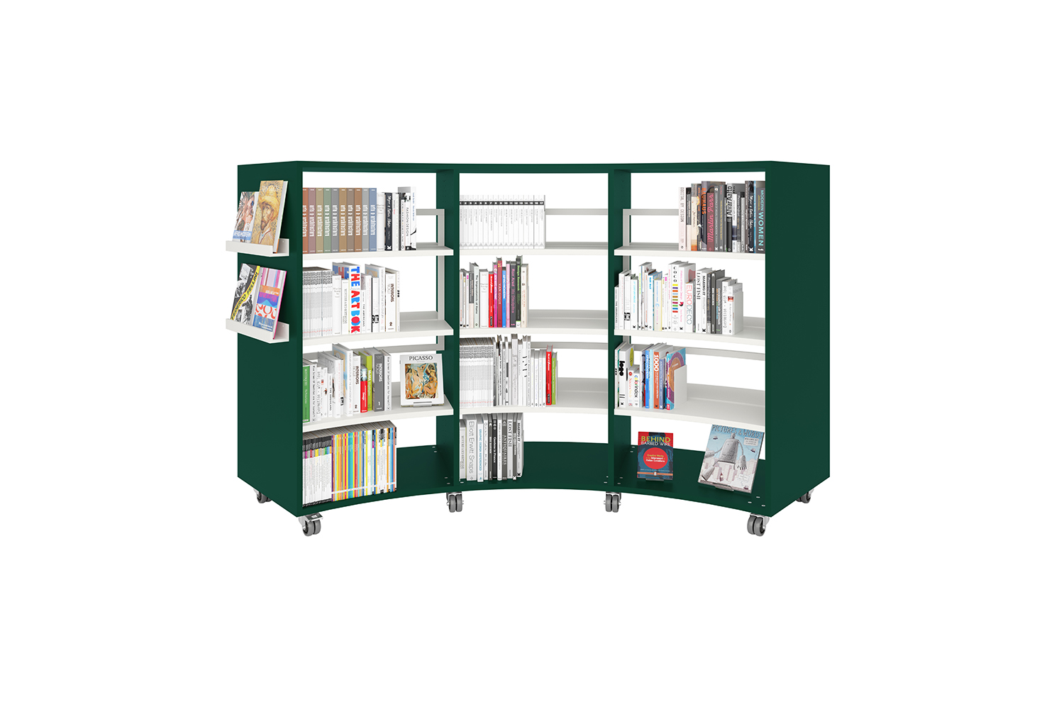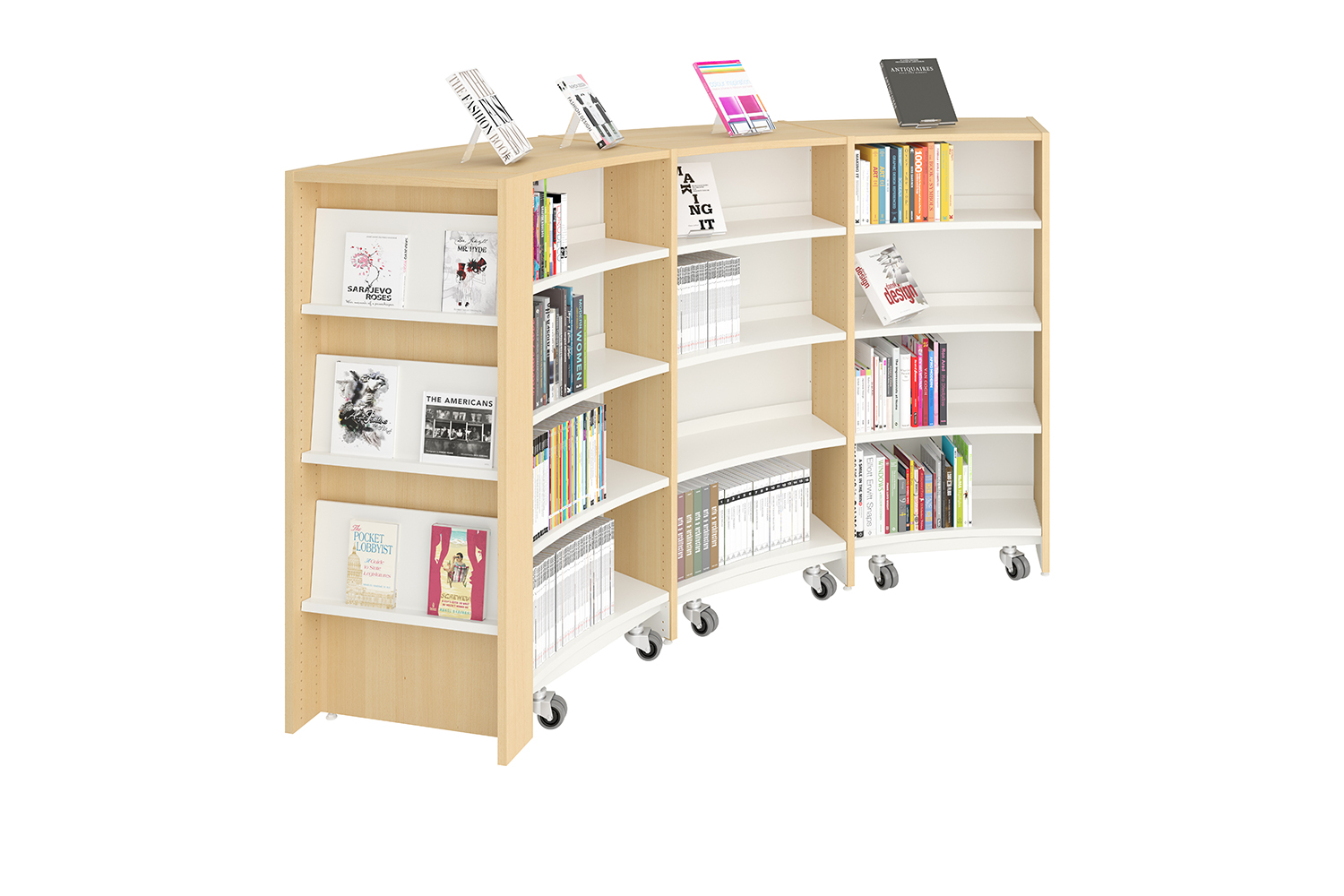 The Lingo round shelving is an ideal solution for both storing and displaying books as well as creating zones in the library. Create small reading or specialized zones by making almost complete circles, where library readers can hide away, or create open waves running through the library.