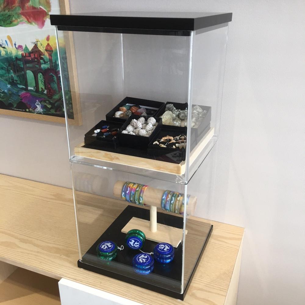 Display with 2 Cubes includes 1 top and bottom set + 2 Cube modules + either 1 display holder OR 1 partition.