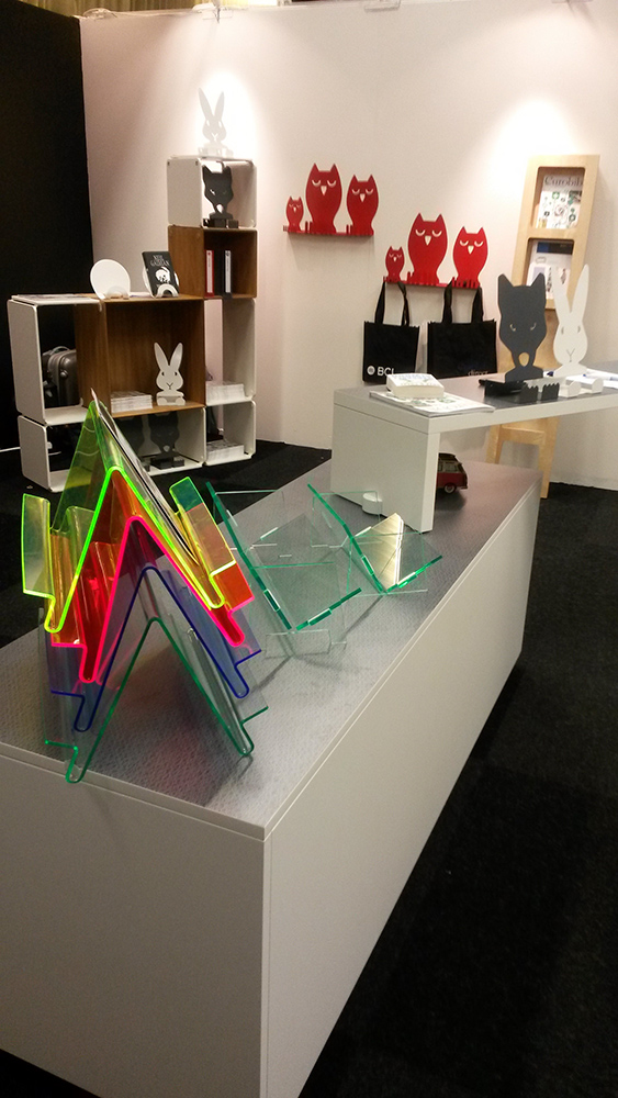 Small smart display stands in various sizes to lift and tilt the viewing titles the best way and book cradles in acrylic with glass look aroused great interest and will shortly be presented in our web shops.