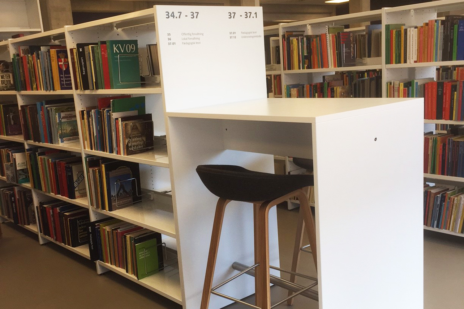 The interior design is made by interior architect Lykke Jørgin from Lammhults Biblioteksdesign A/S in cooperation with Move Arkitekter. Lammhults Biblioteksdesign has delivered the furniture including Frontline shelving system, Maria display stand, tables, chairs and a variety of customised furniture.