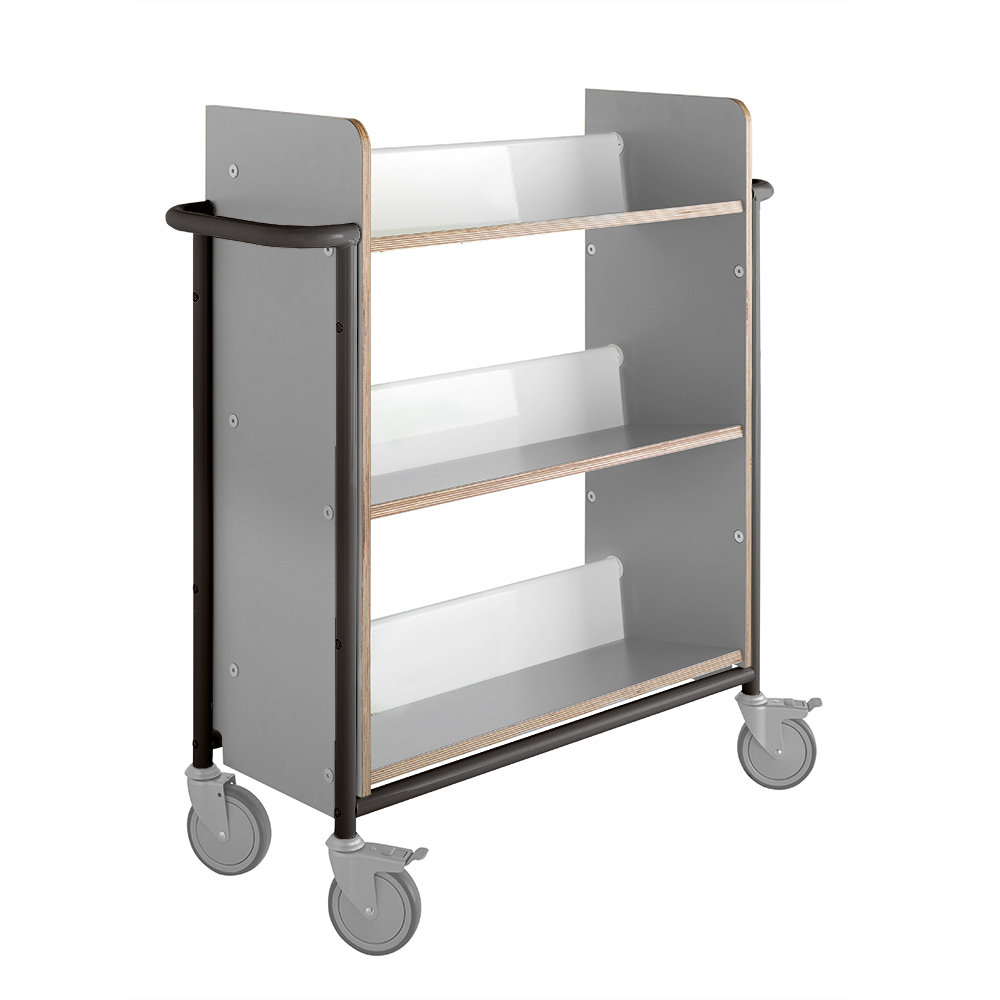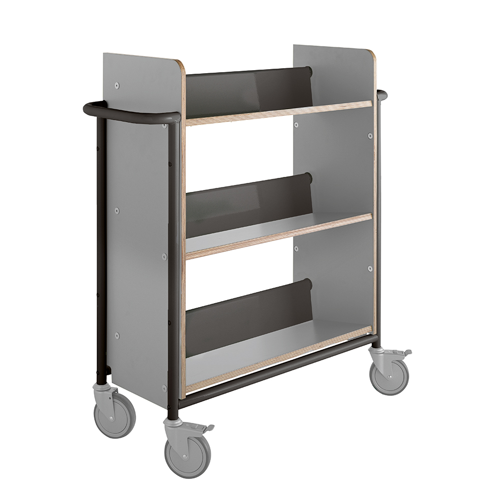 The trolley is spaceous and has a generous shelf clearance for all sizes of books and binders.