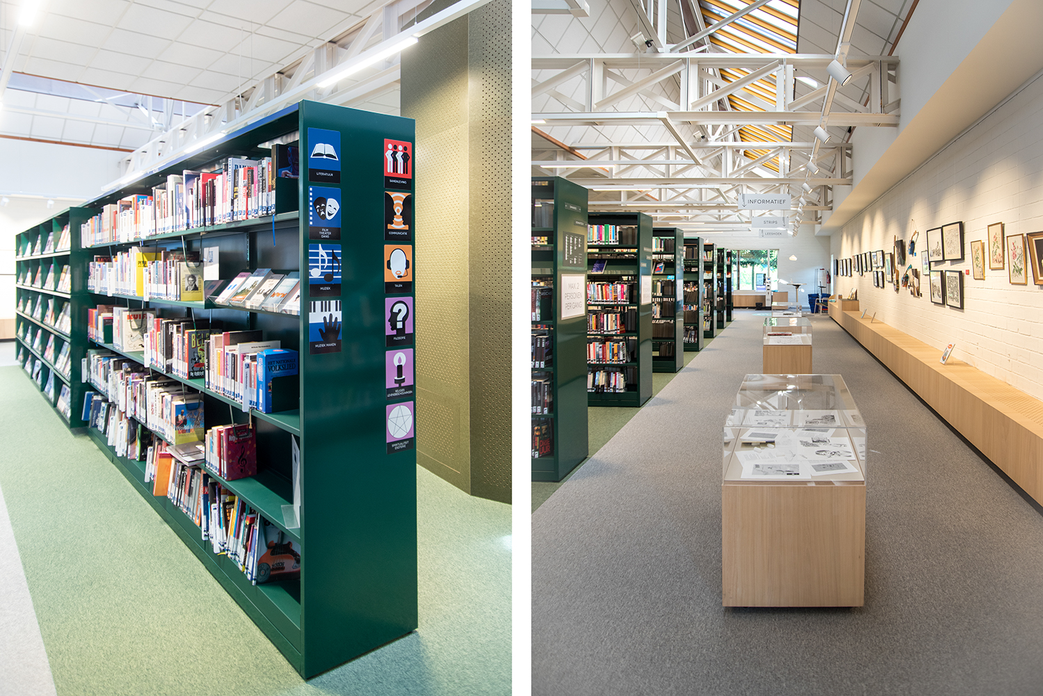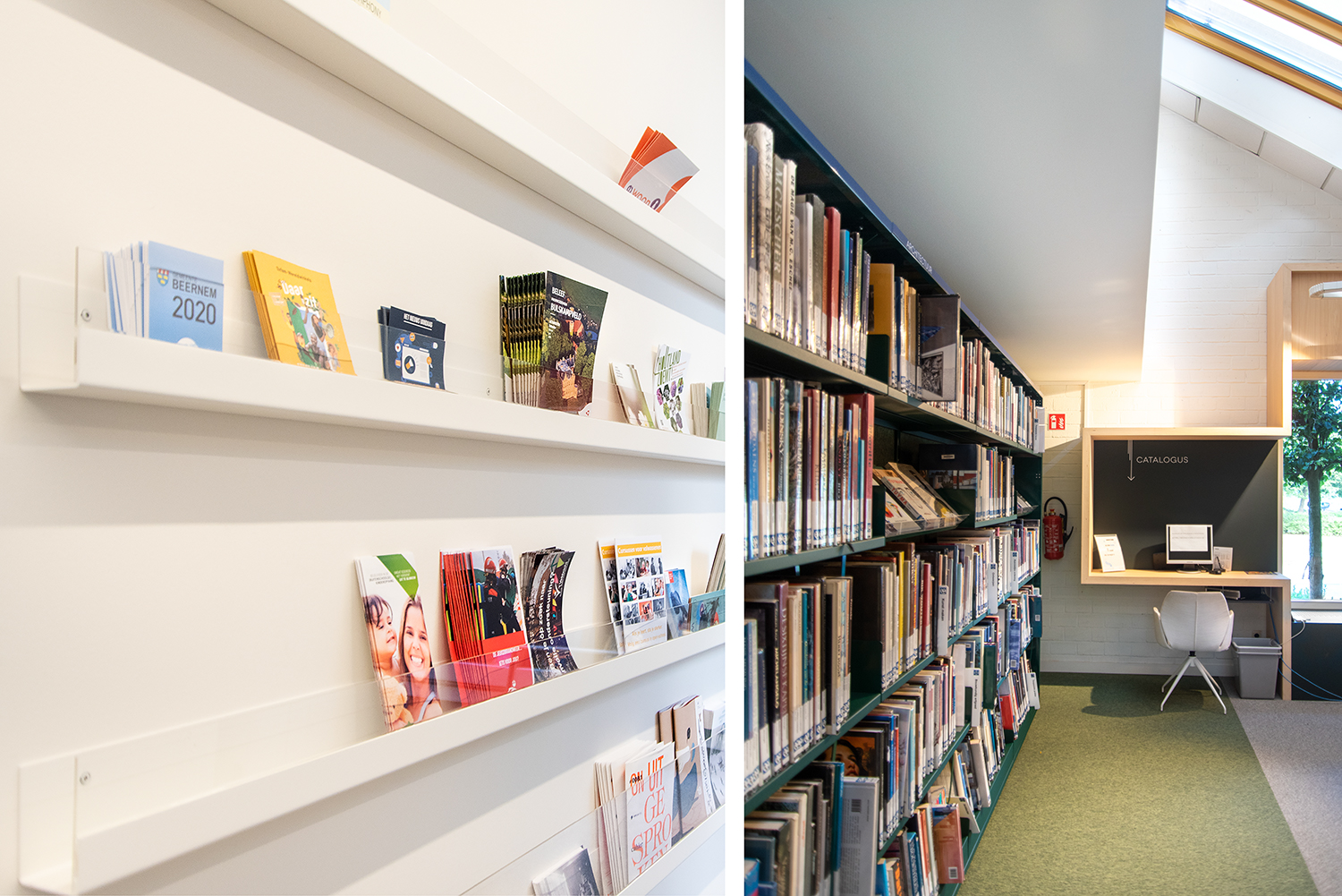 After almost 30 years, Beernem's library was due for a thorough makeover and a future-oriented shift from a purely collection-oriented library to an experience library. With new lighting, customized furniture and new library shelving, a contemporary knowledge center was created where visitors are given a warm welcome. A new construction provides extra space, especially for the young readers. In the clearly legible interior, the visitor will find his way automatically thanks to a clear layout and signage. The use of color and materials with a Scandinavian touch brings visuel rest, but also homely cosiness to the lively library.
