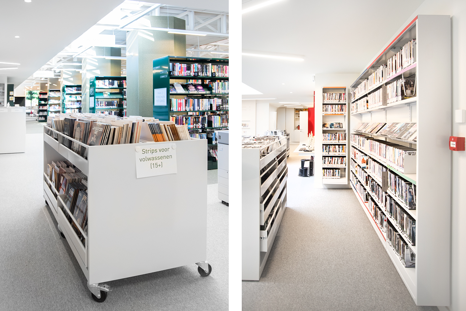 Assistant Sofie Pierins is delighted: “The visitors are very pleased with the changes. It’s a world of difference for them. The interior is flexible and radiates timelessness. Partly thanks to the chosen colors, the different zones in the library are clear to all readers. ”