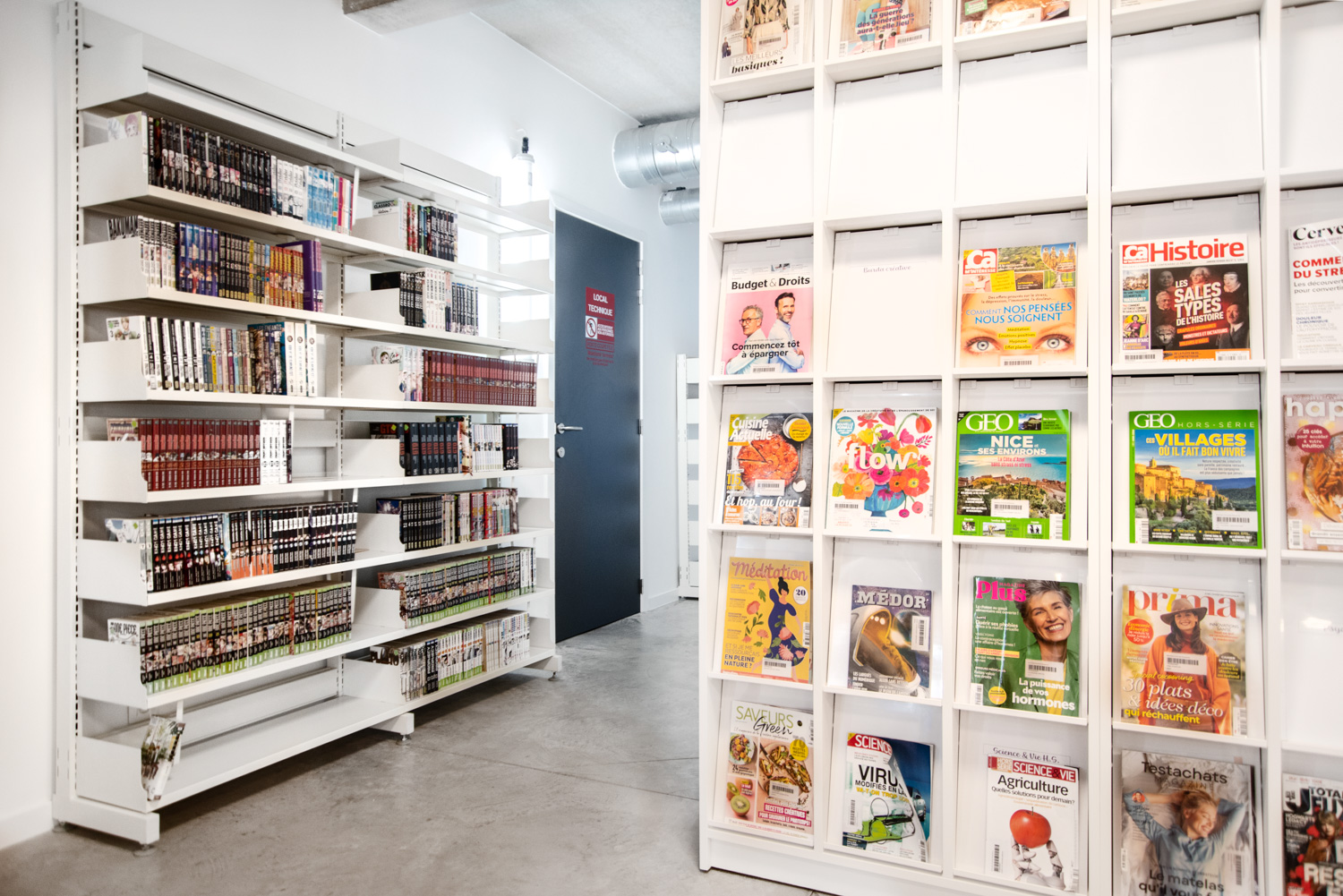 Librarian Joëlle Petitjean says: “Due to our wide range of books and media, the interior can seem a bit compressed, but in the new location there is more space. Almost half of our readers are children, so it has been very important for us to create an inviting children’s zone designed to their needs.”
