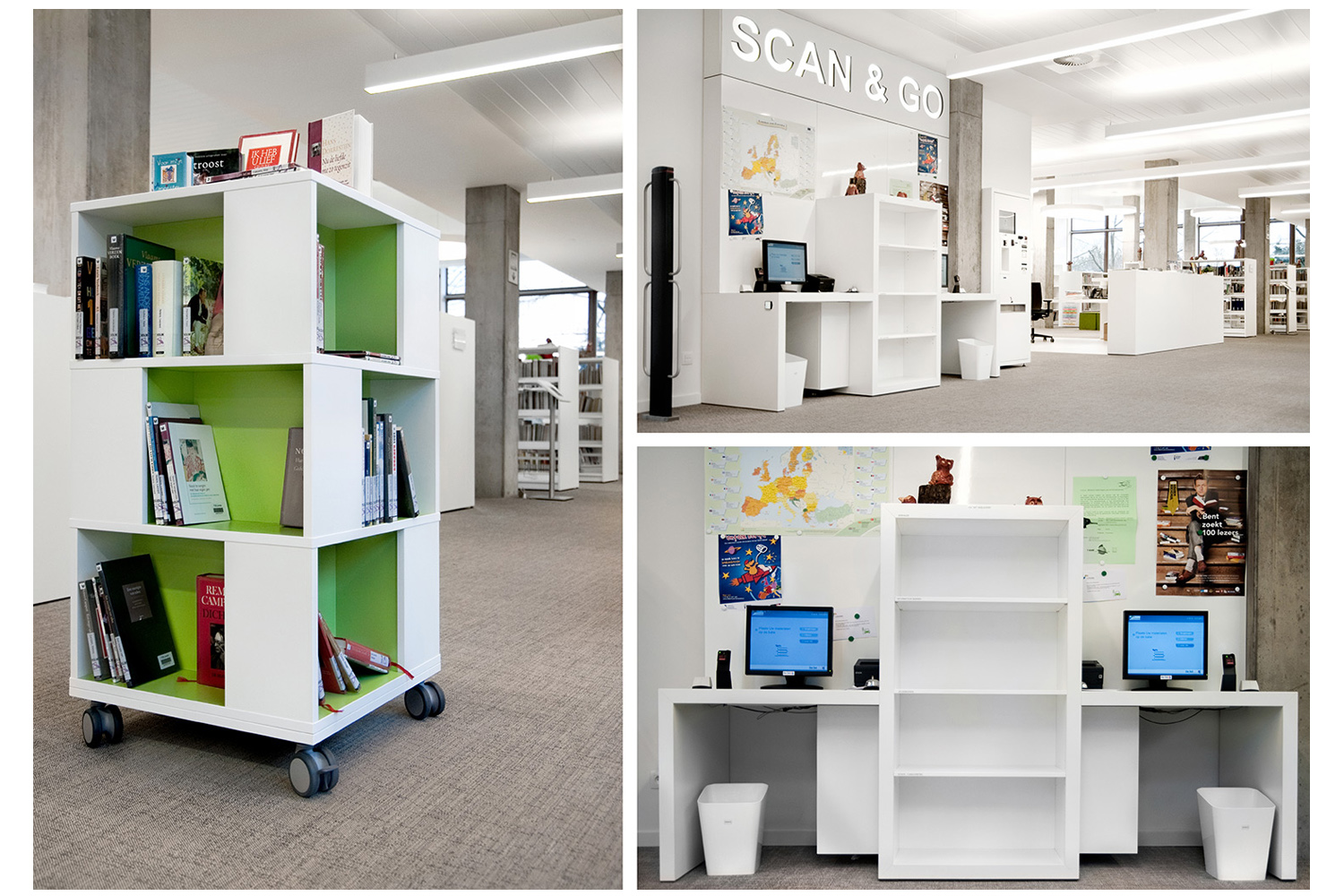 Since September 2012 the inhabitants of Lummen can now enjoy a transparent, light and open space to find information and inspiration. The interior solution was created in cooperation with architect Peter Van Nuffel. We have managed to create a contemporary and sustainable solution using standard furniture that can adapt and modify.