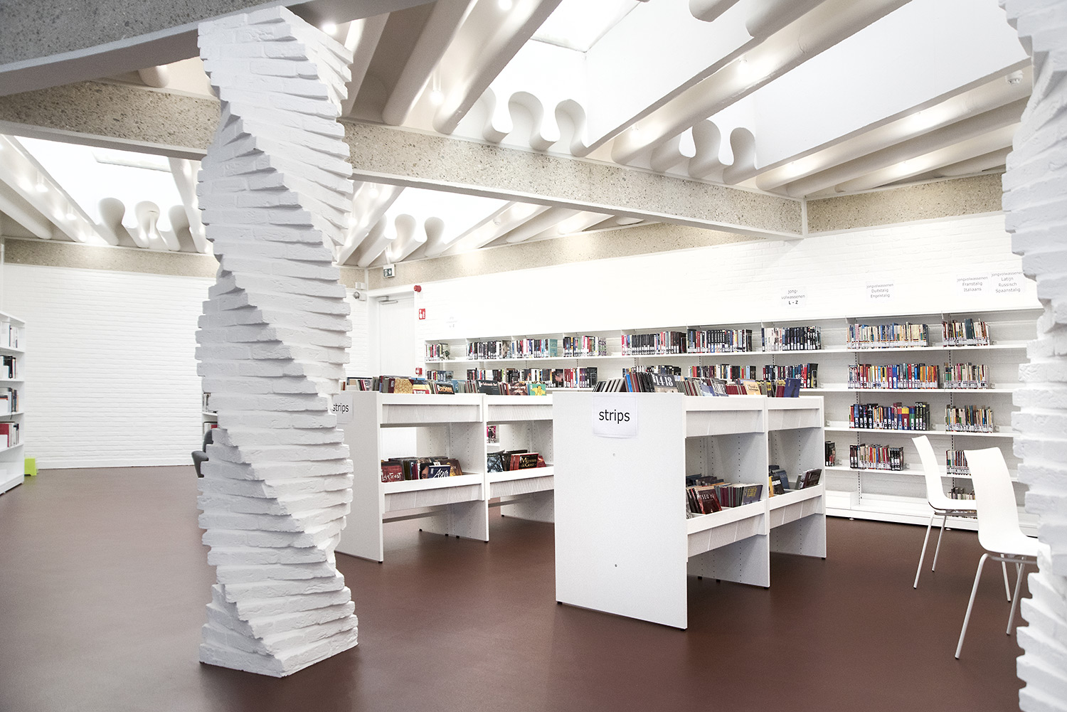 The aim of Braem was to create a building with a playful and organically shaped architecture that works as a cultural magnet for young and old. With this philosophy in mind, we have designed the new interior of the library.