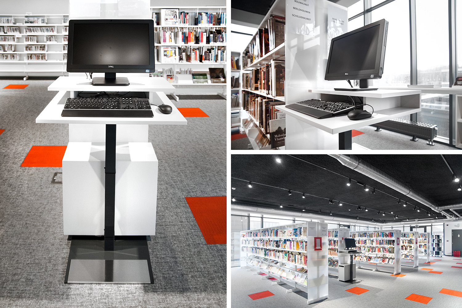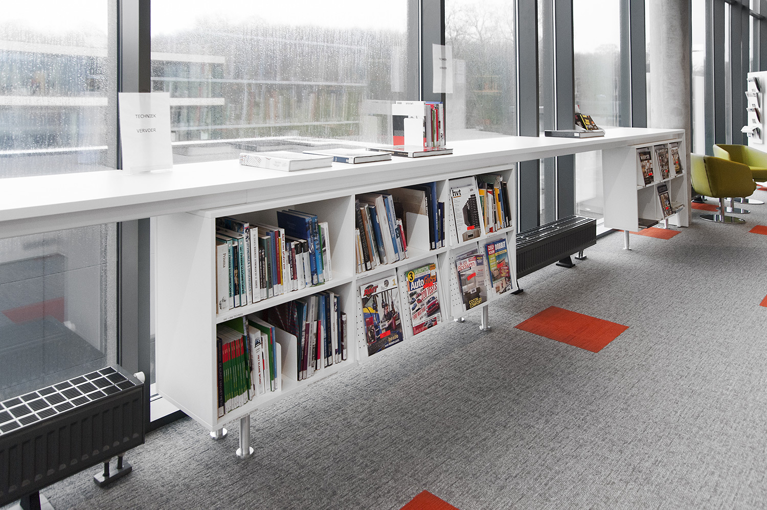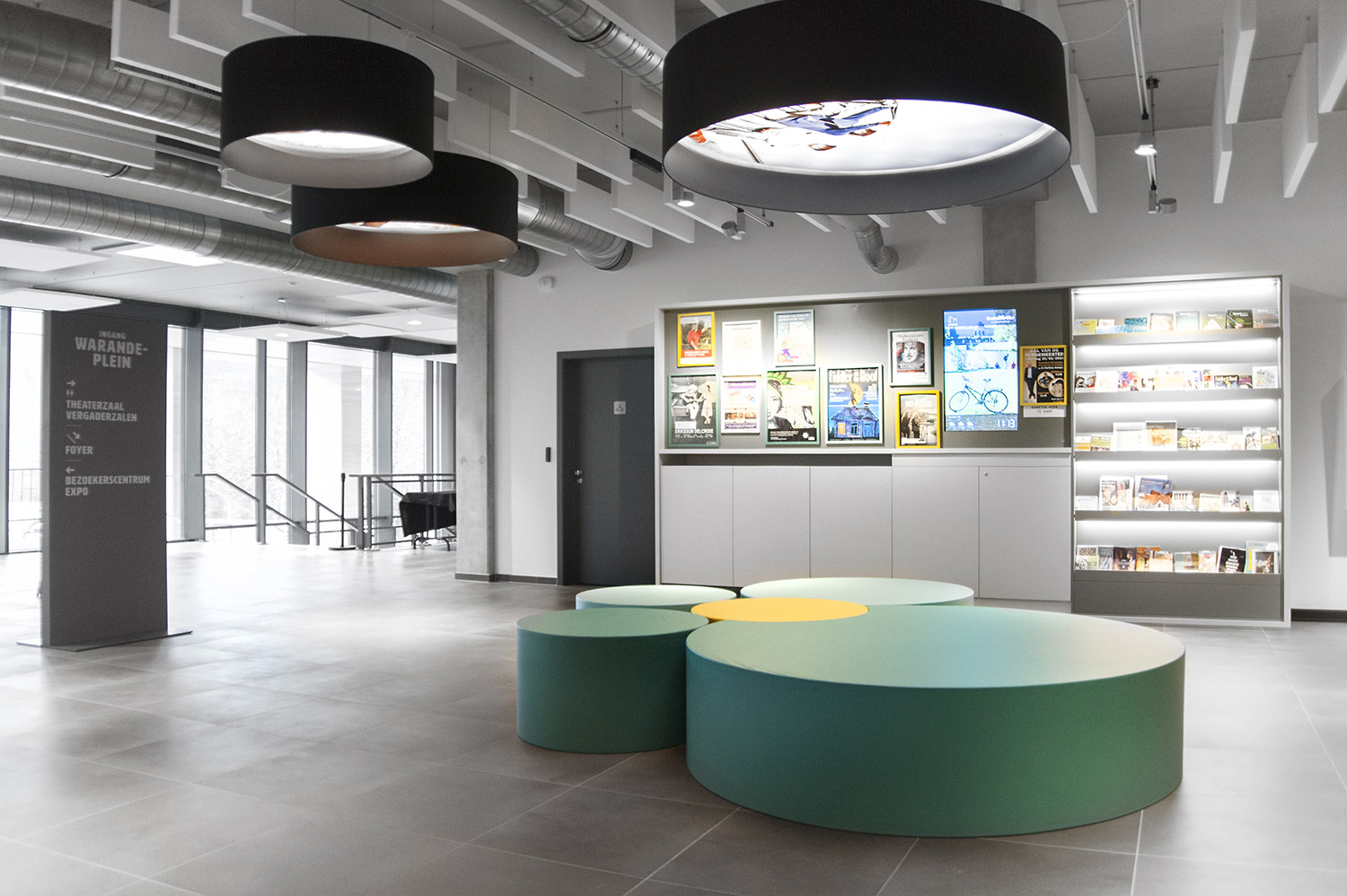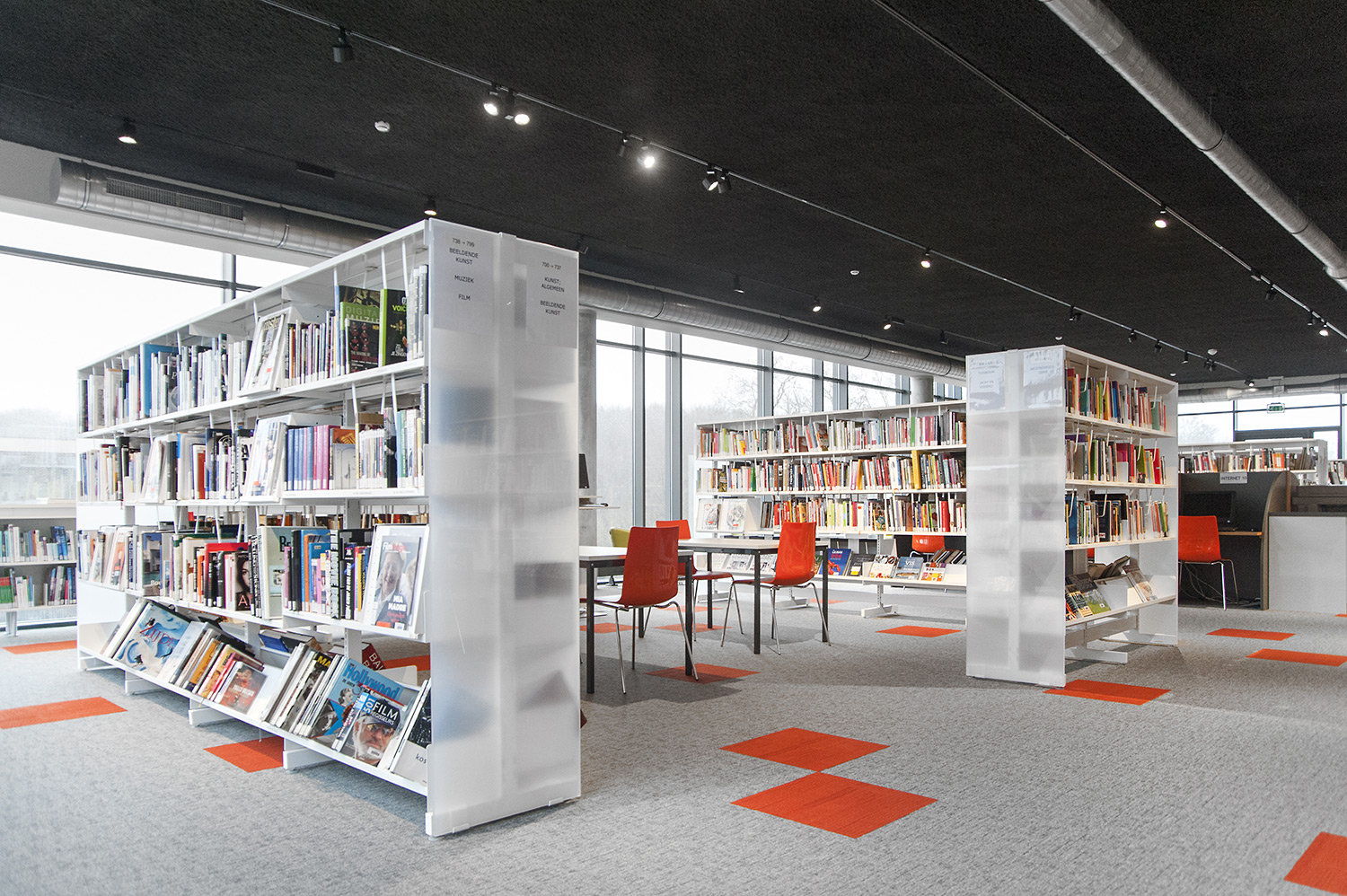 The new cultural centre De Warande houses a theatre, tourist information desk and the library. The building nestles itself between the bucolic lakes of the Warandepark and the sparkling city centre. In cooperation with the municipal architect, Landmark consultancy and the experienced librarian Herman de Meulemeester, we designed a library with focus on a bright presentation of a selected, attractive collection.