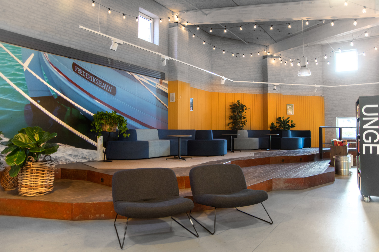 In 2016 we started working on a unique and exciting children and youth department in Frederikshavn Library. The goal was to create a cool place to hang out for teenagers and a playful area for the smaller children.