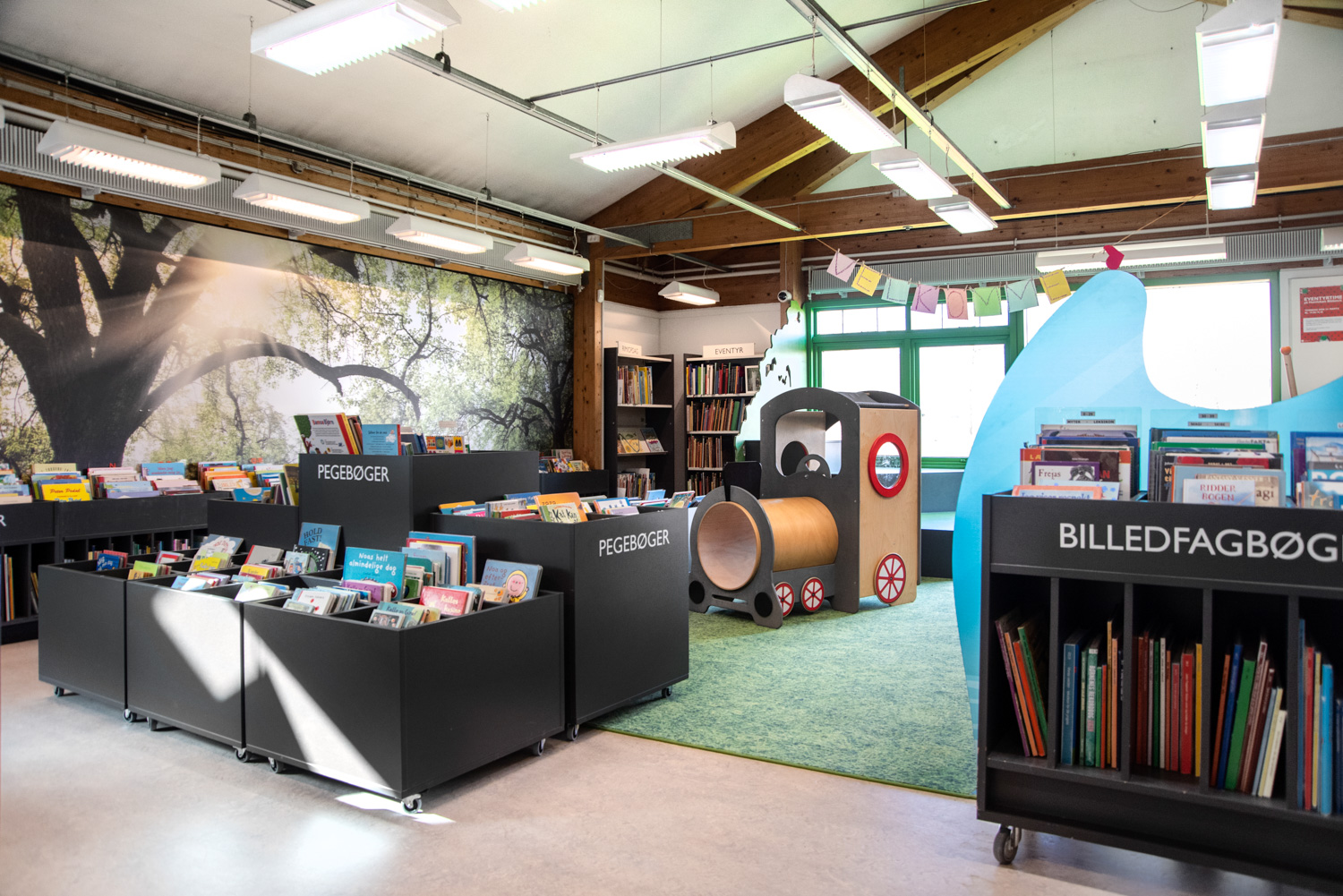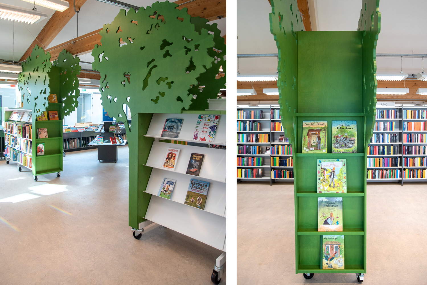 The renovated children’s department of Humlebæk library was finished in 2021. The purpose was to add more accommodation and include nature elements in the library.
