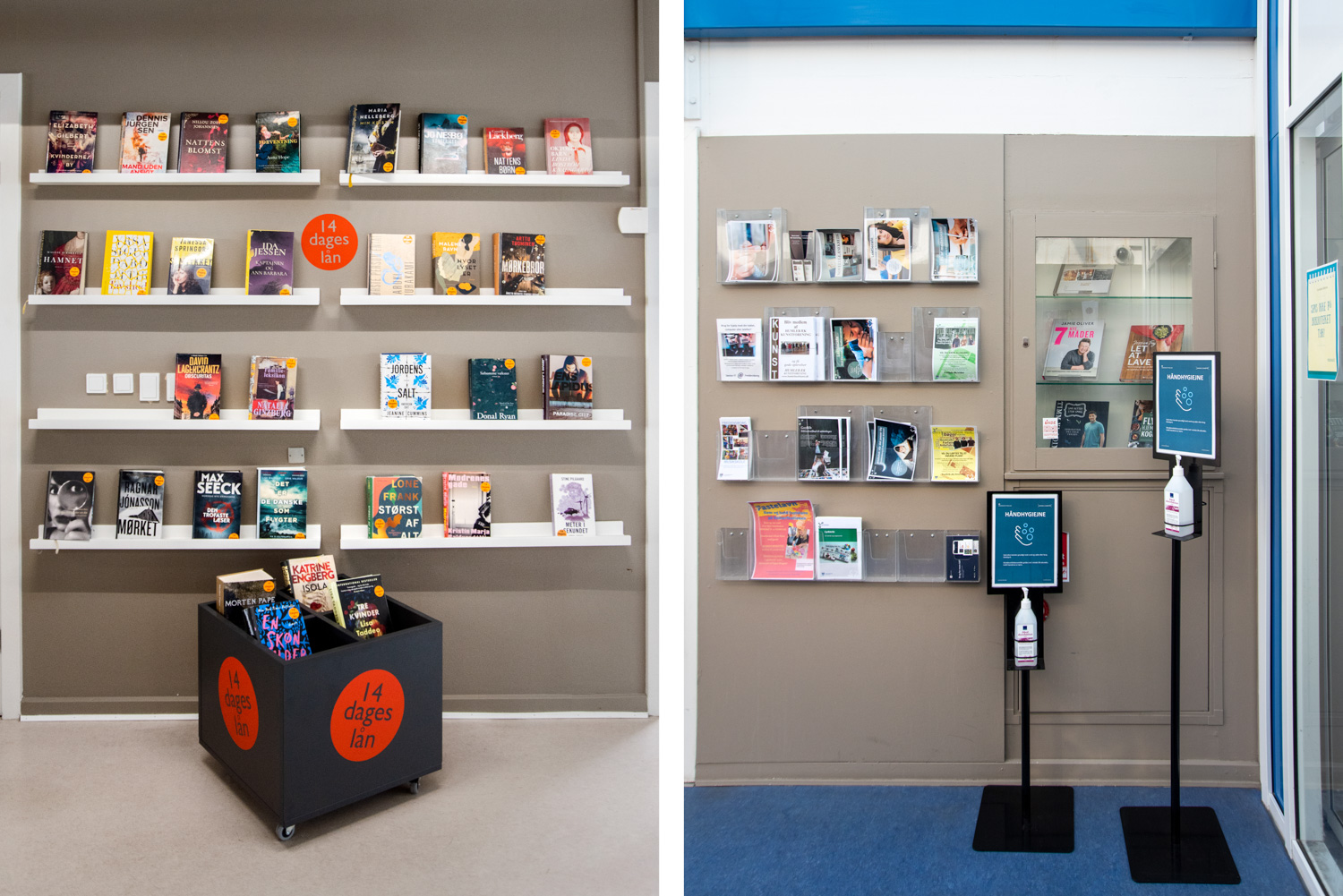 Before the renovation, the children’s department was dominated by tall shelving systems containing books for children of all ages, all mixed together. After the renovation, lower shelving systems have replaced the taller ones, creating a room within the room, books for different target groups have been separated, and custom-made library furniture focuses on play, nature, and fantasy.