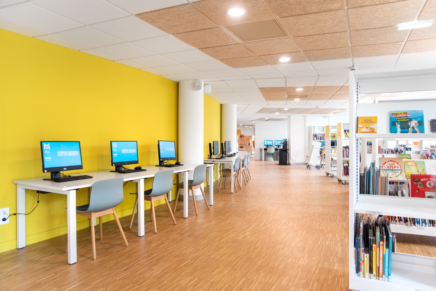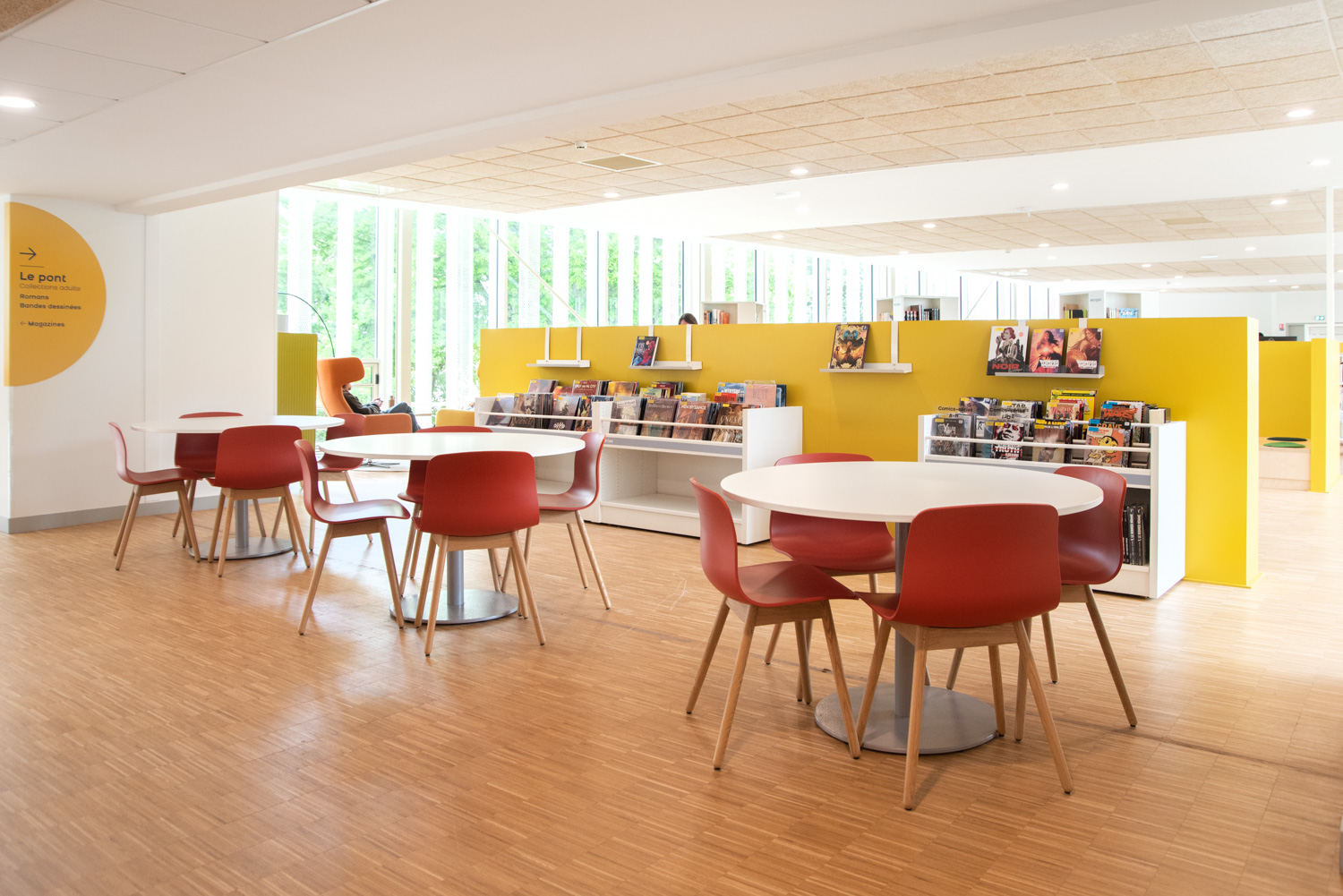 Niort Agglomération has renovated and enlarged by 40% the Pierre Moinot Media Library in Niort, built in 1986, to offer the public a new environment for consultation, exhibitions and events, open onto the boulevard Main and the river of the Sèvre.