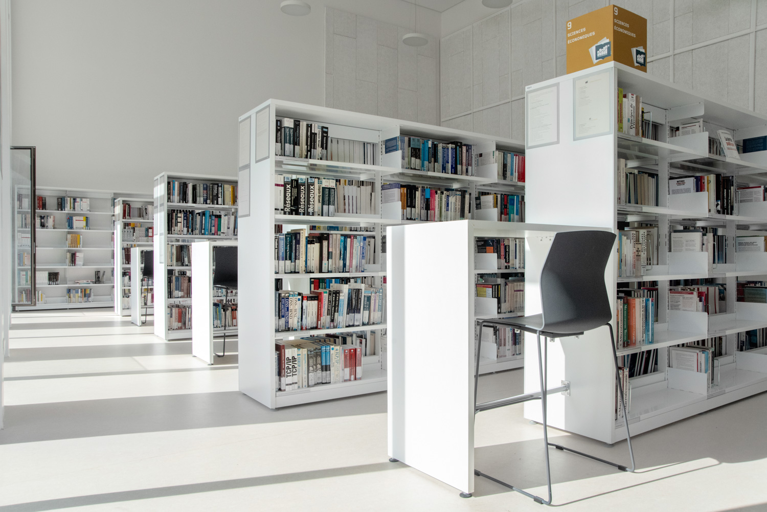 The library / Documentary and Digital Resource Centre (CRDN) has therefore been completely redesigned in order to be able to offer different areas to students, teachers and staff. Designed as a "third place" with spacious areas, the CRDN offers its users many services and documentary resources.