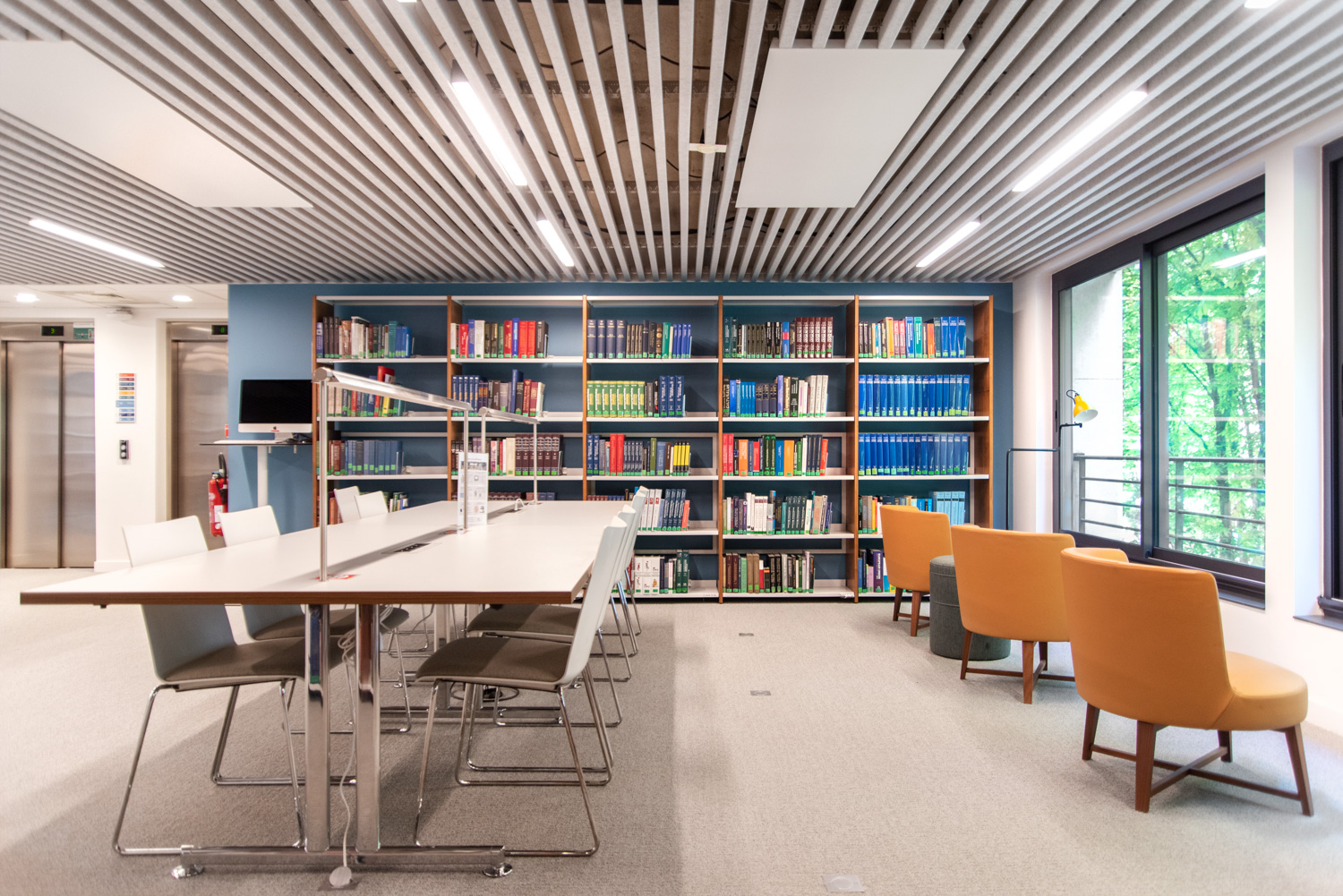 The American University of Paris (AUP) is a private liberal arts institution with an urban campus in the 7th arrondissement of Paris. A generic post-war office building has been transformed into dynamic, student-centered “Learning Commons” which is home to the university library, student academic and career advisory services, writing lab, multimedia lab and classroom, IT support, research centers, classrooms, and top floor conference center and off-hours lounge.
