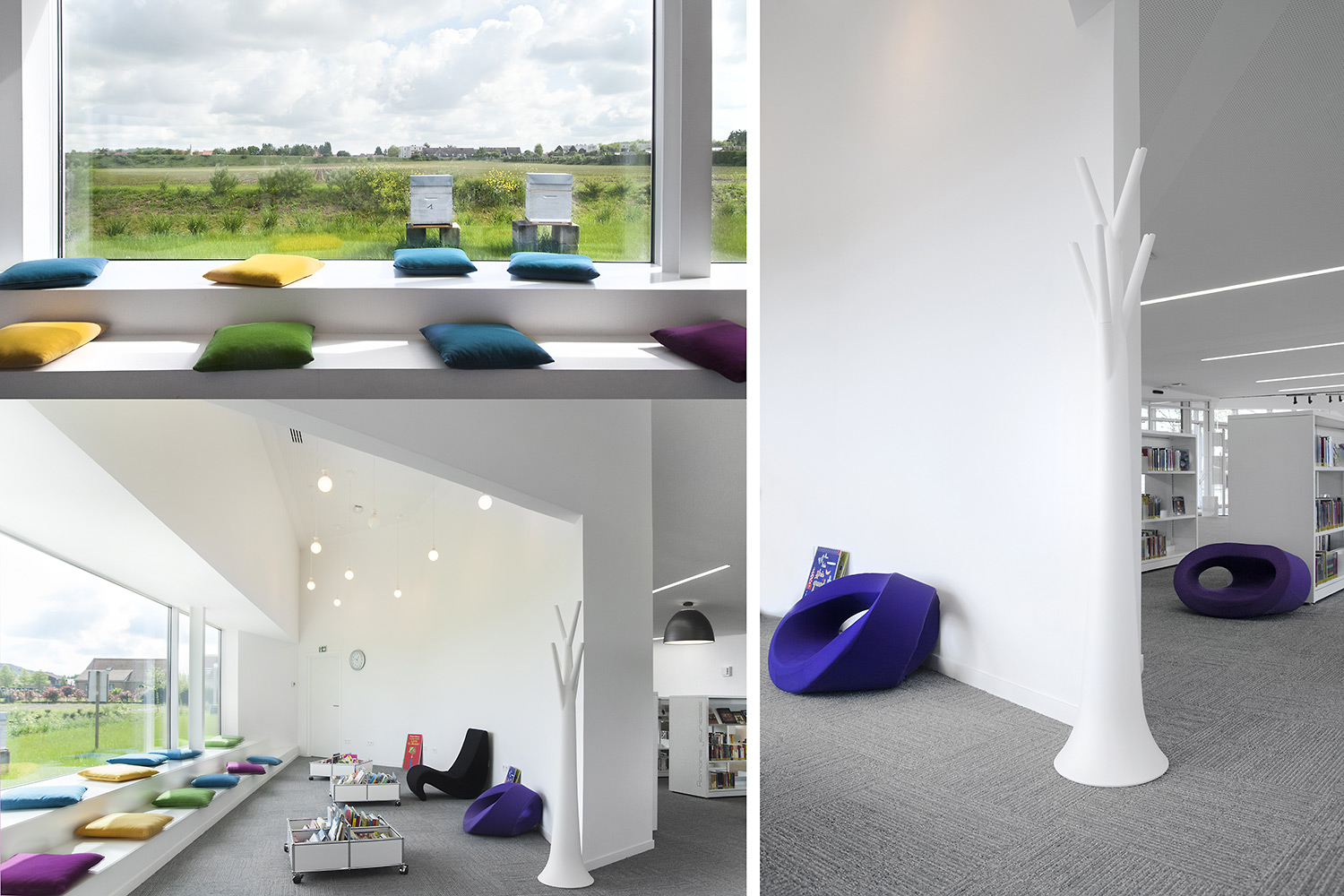The city Rouvroy has developed a building which has implemented a library of 1,136 sqm. The library includes a 650 sqm reading room, a conference room of 138 sqm and internal public services.