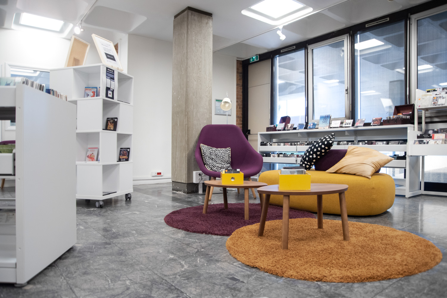 We have also worked on improving the overall visibility inside the library by reducing the heights of the shelving systems and using curved shelving systems.