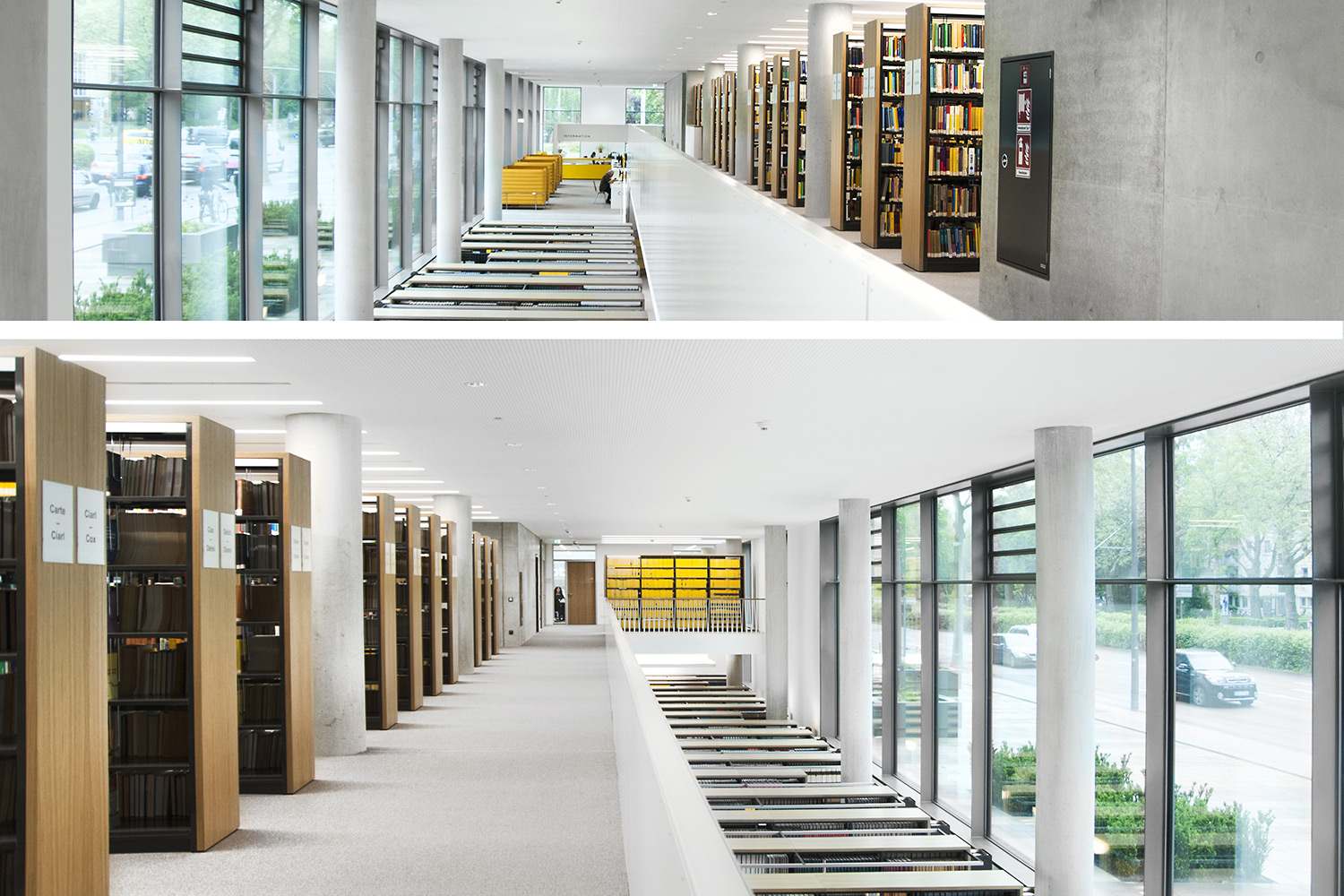The new central library of University of Heidelberg is located on two floors in the new building at the new site "Neuenheimer Feld".