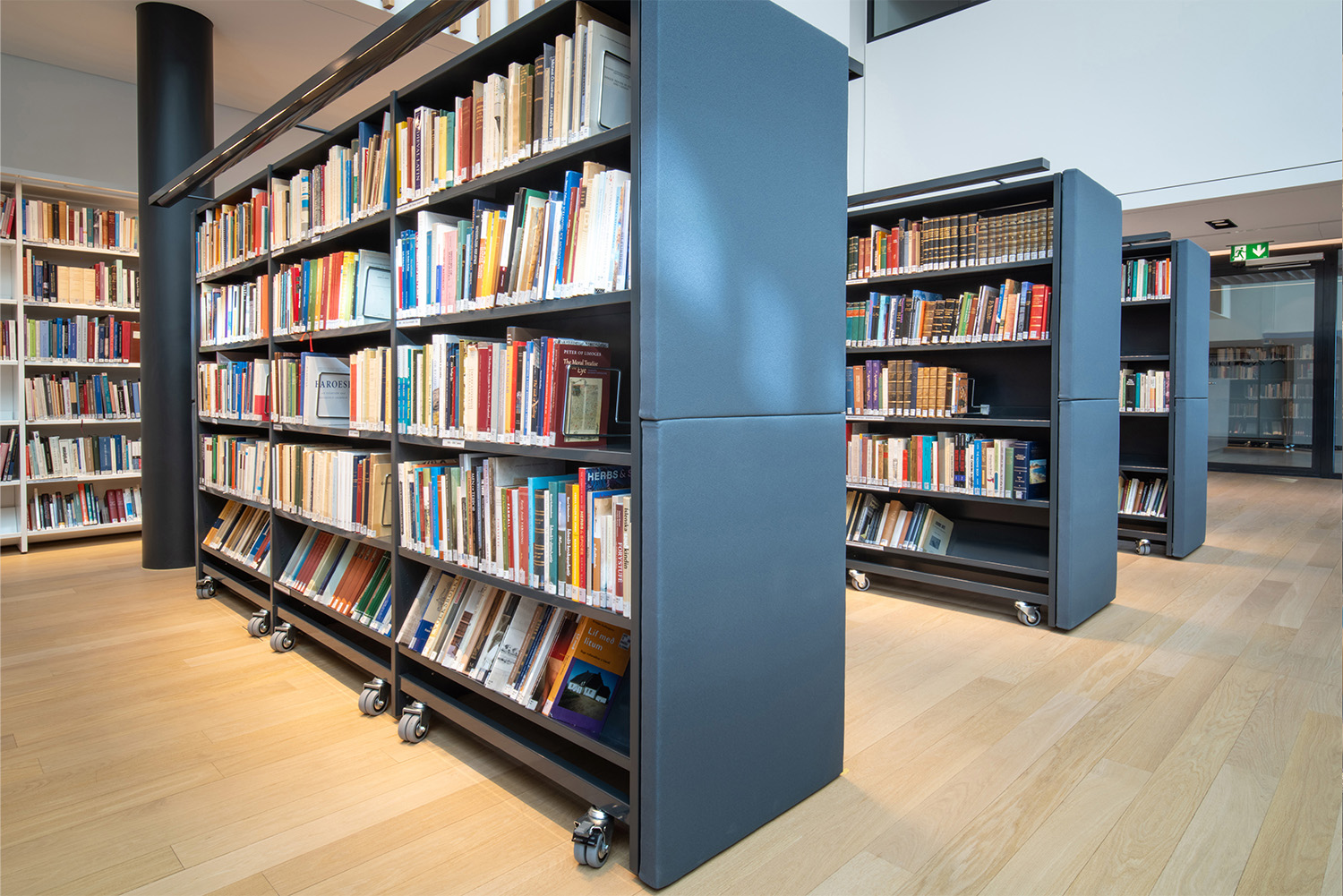 We worked with our partners Þjónustumiðstöð bókasafna in Reykjavik to supply the best solution for the customer and building, resulting in using a combination of static and mobile, straight, and curved Lingo shelving with lighting and acoustic treatments.
