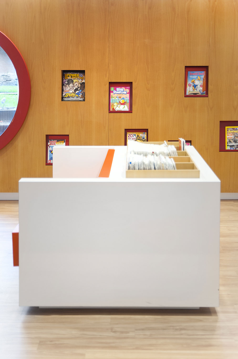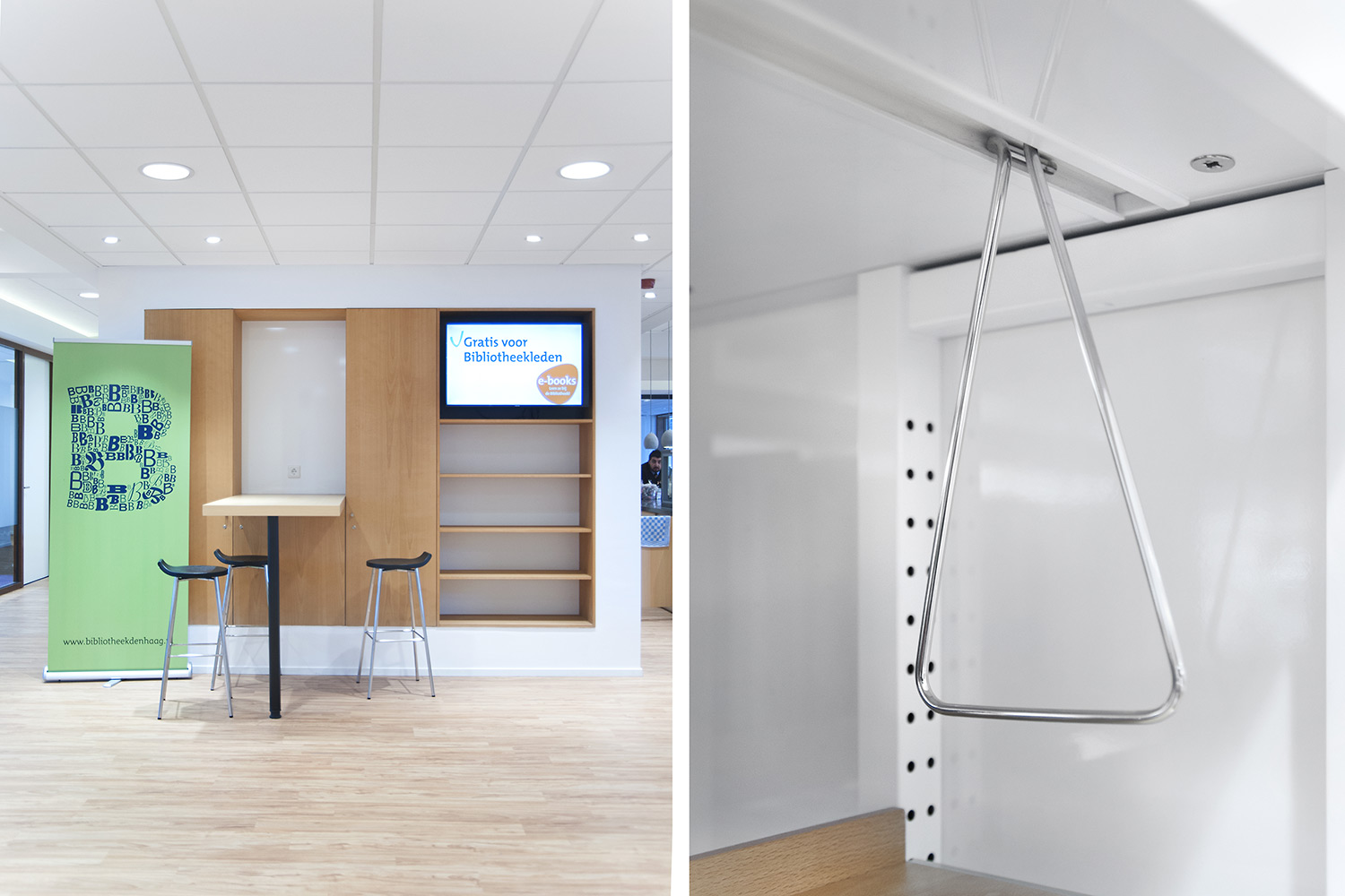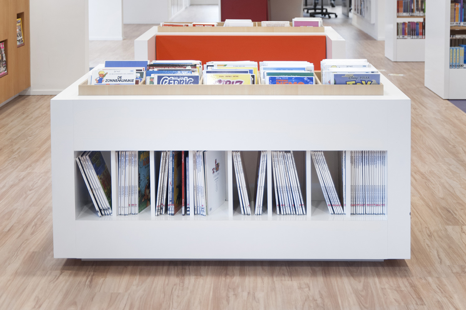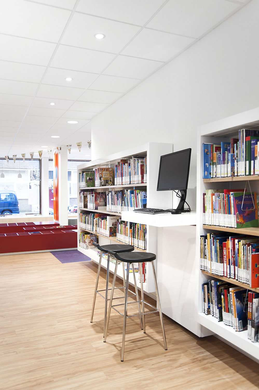 The design of the library has been made by the archtiects +31ARCHITECTS and Millie’s. The interior is spacious and light. It is a combination of custom furniture and standard Uniflex library shelving. But even the library shelving is used in a way so that it almost looks like custom furniture.