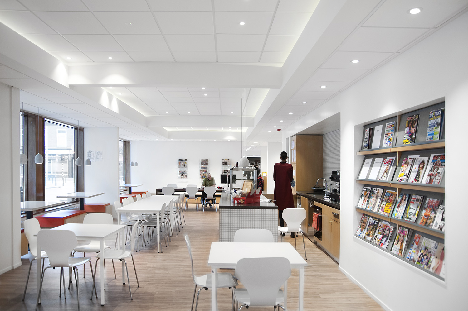 It also has an educational function. Young people can work in the media lab and tutors can find classrooms in the library.