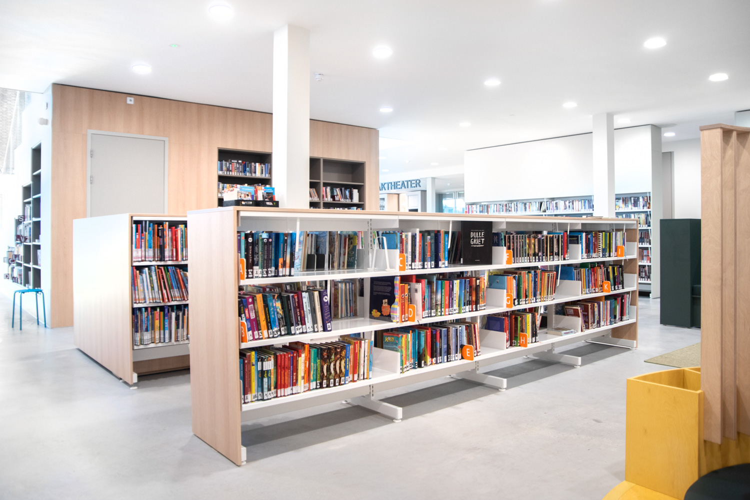 The interior, designed and manufactured by Puur Sang and Schulz Benelux, facilitates many activities that take place in the library such as courses, computer cafes, lectures, and children’s activities.