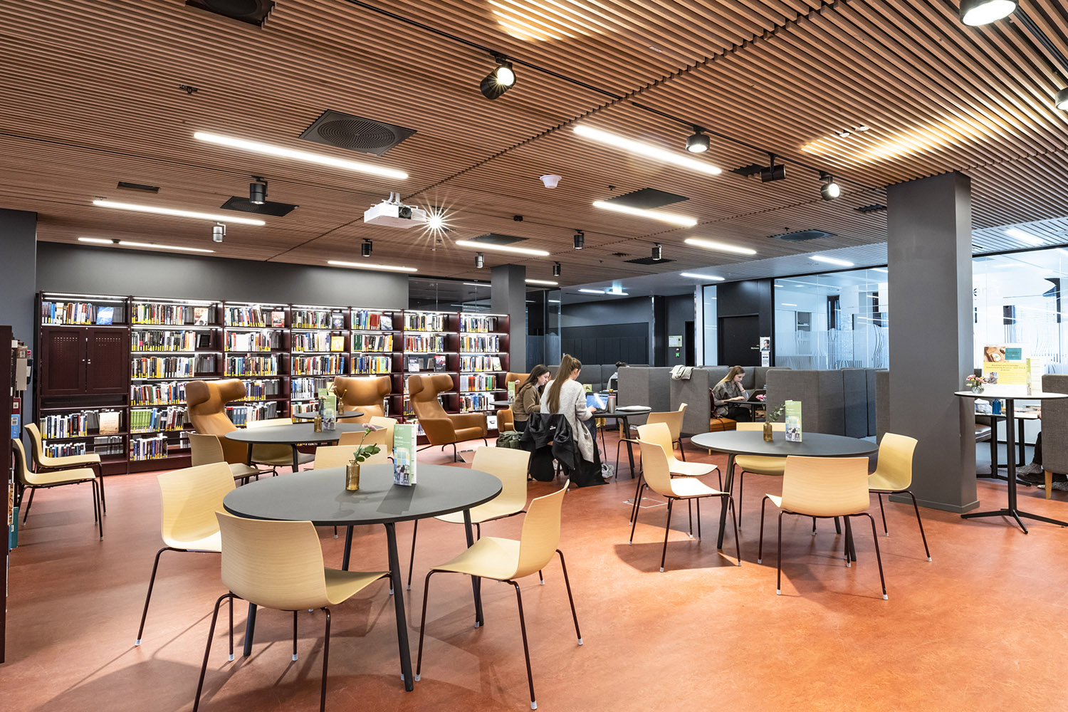 Inviting seating areas are important, and in the library you will find both individual reading places and places for group work.