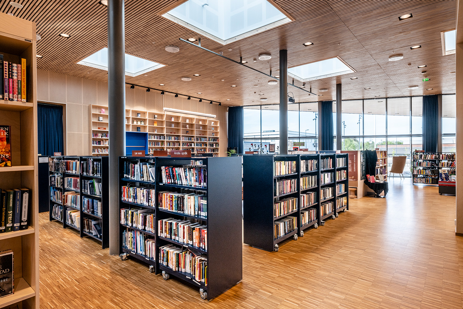 All shelving systems and browsers are delivered in stunning, dark blue colours.
