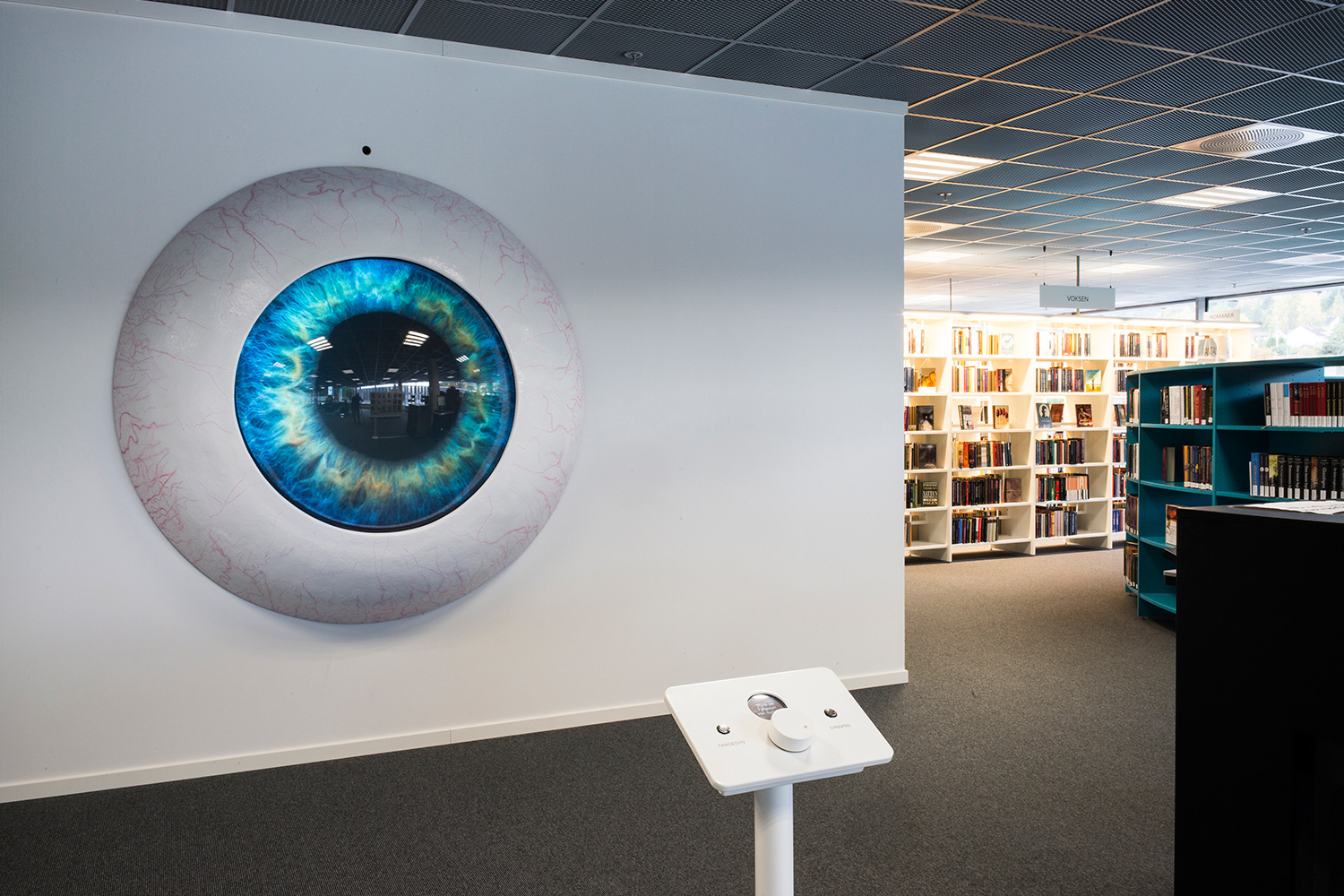 The interactive Eye, which is placed in the entrance area, is both an anatomic and iconic installation that is meant to involve and inspire visitors and students to learn more about this specific part of the human body. By interacting with the eye you get the opportunity to investigate the world from a whole new angle and see how it is to be colour blind or have an impaired vision. Read more (English)