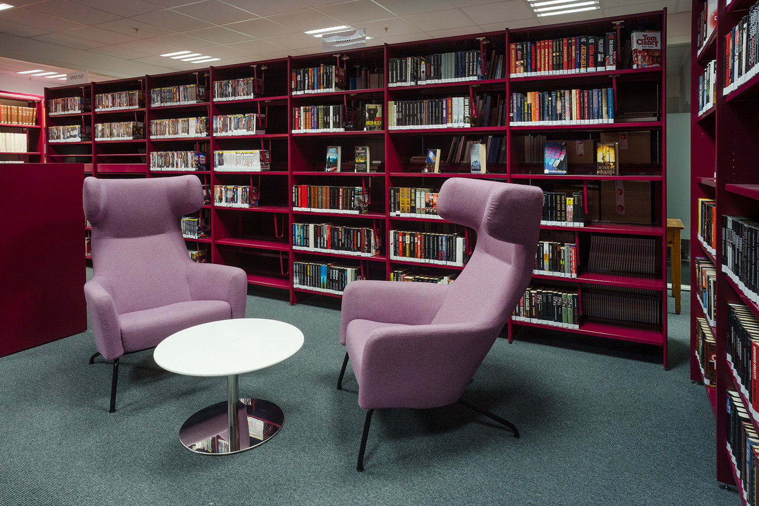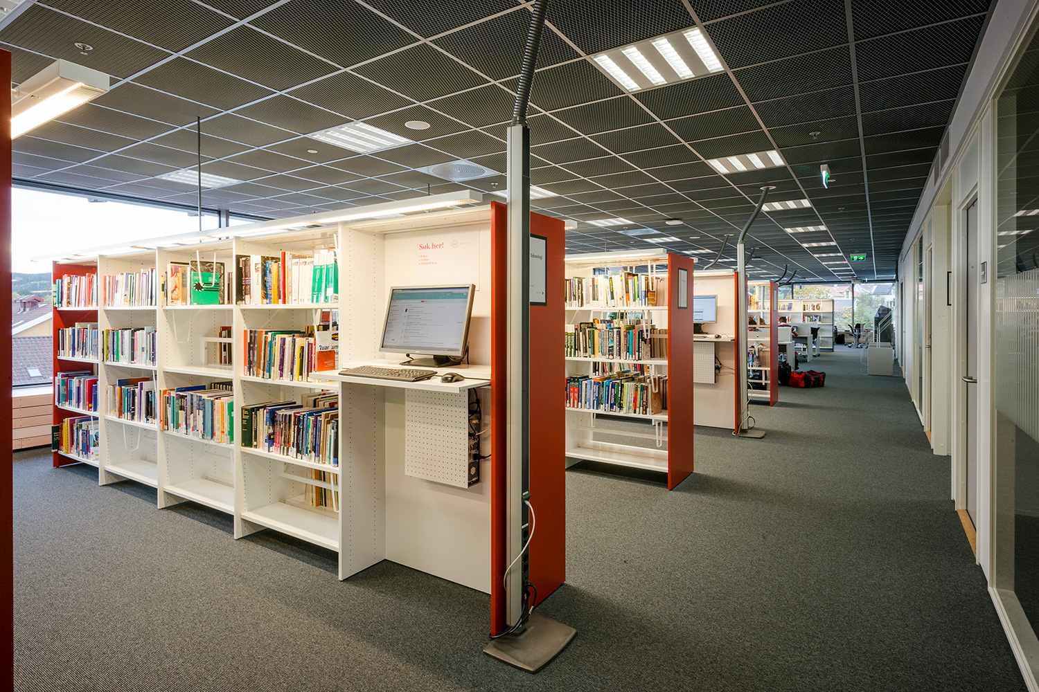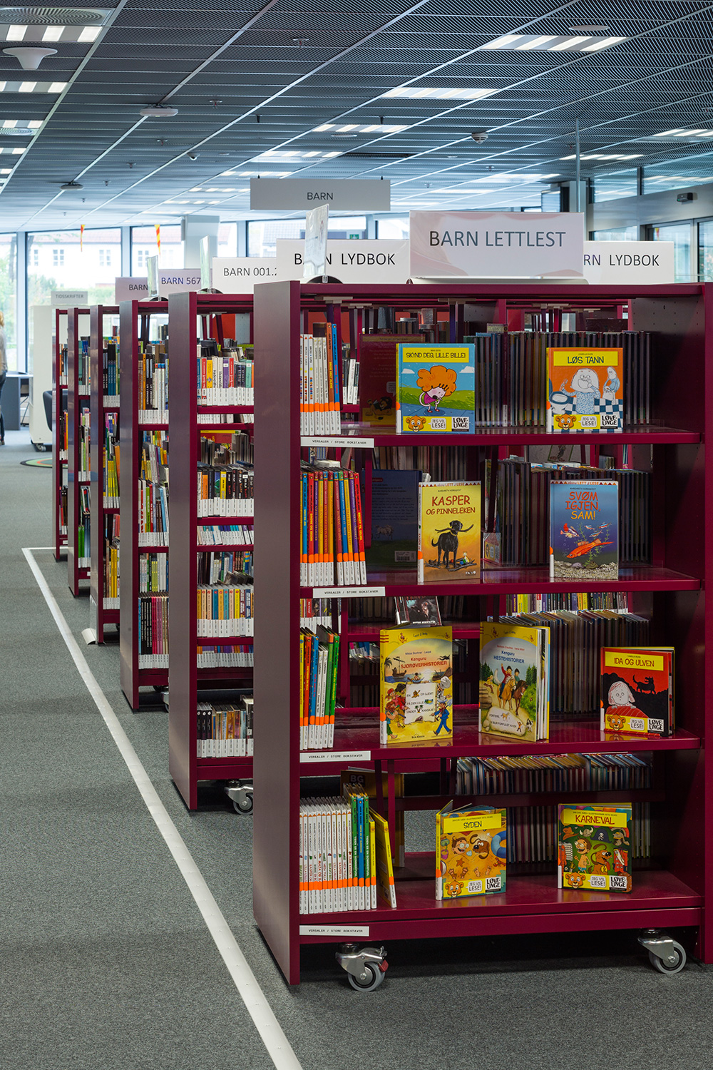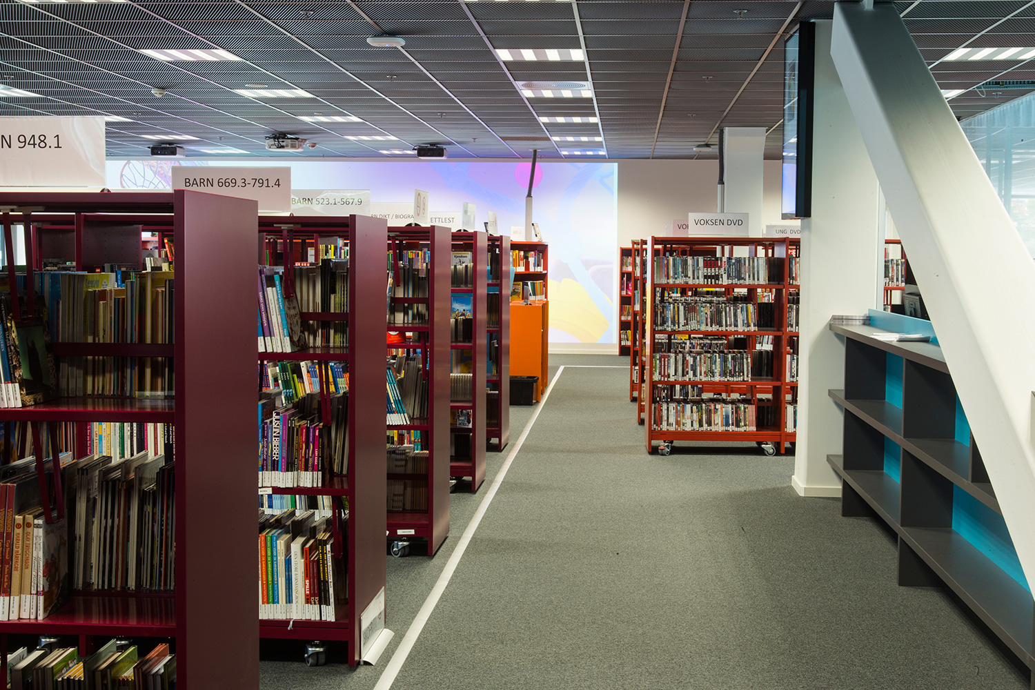BS Eurobib has delivered all furniture, interior and lighting and has had great focus on colours, light and design. The goal was to create a place to be, not just a library, but also a meeting place for the citizens of Kongsberg. It was important to tie the traditional and new media together and the innovative, interactive solutions makes the library unique.