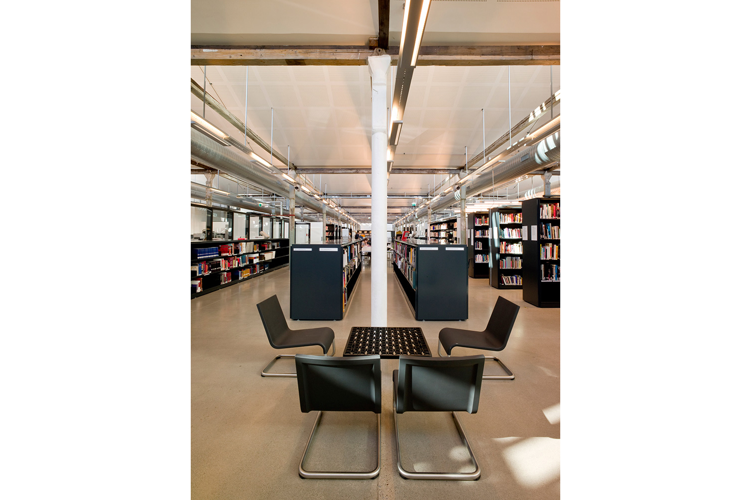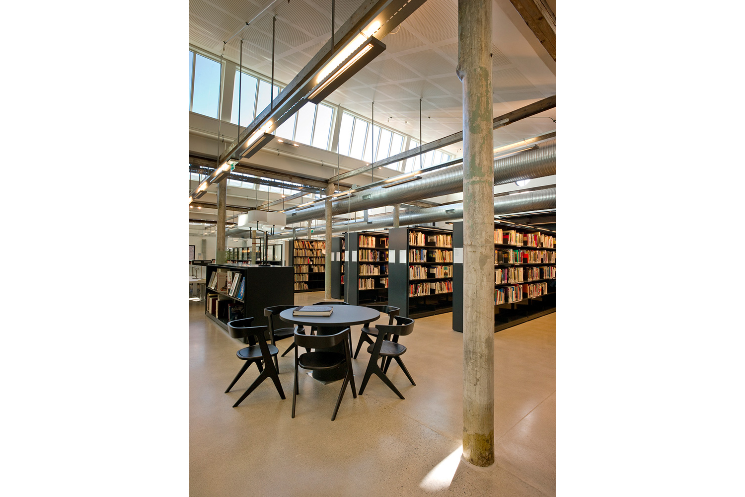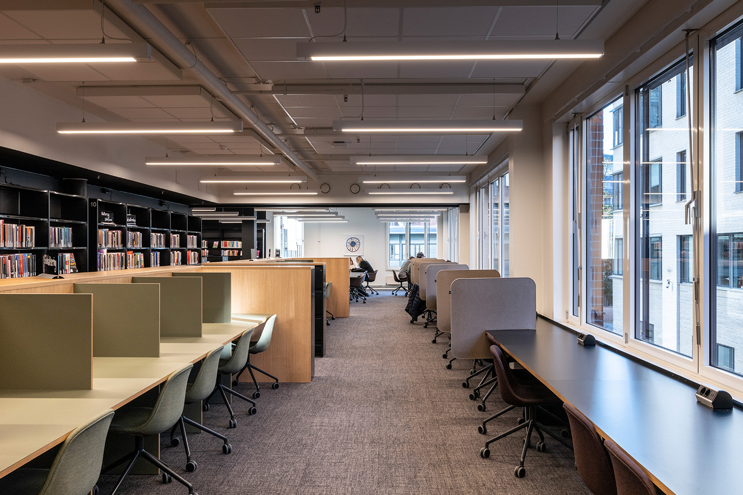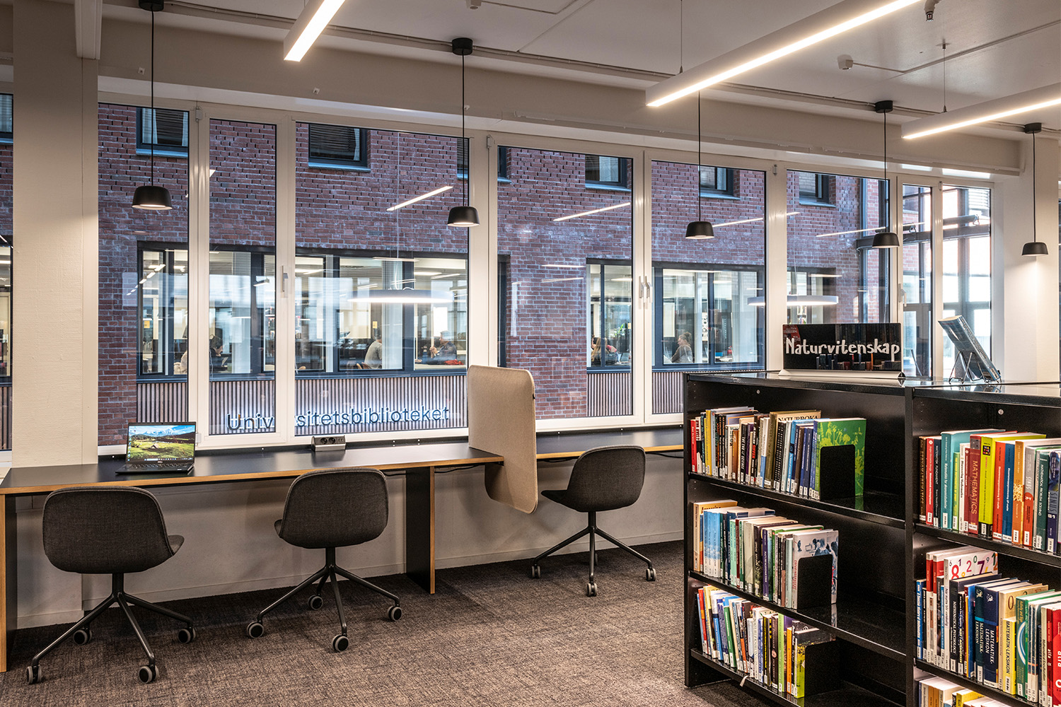 The old factory has a total area of 40,000 sqm and the library is an important part. With a mix of old and new, the design gives room for creativity and cares for the history. The library is one of the most modern in Norway and a vital resource for students and faculty.