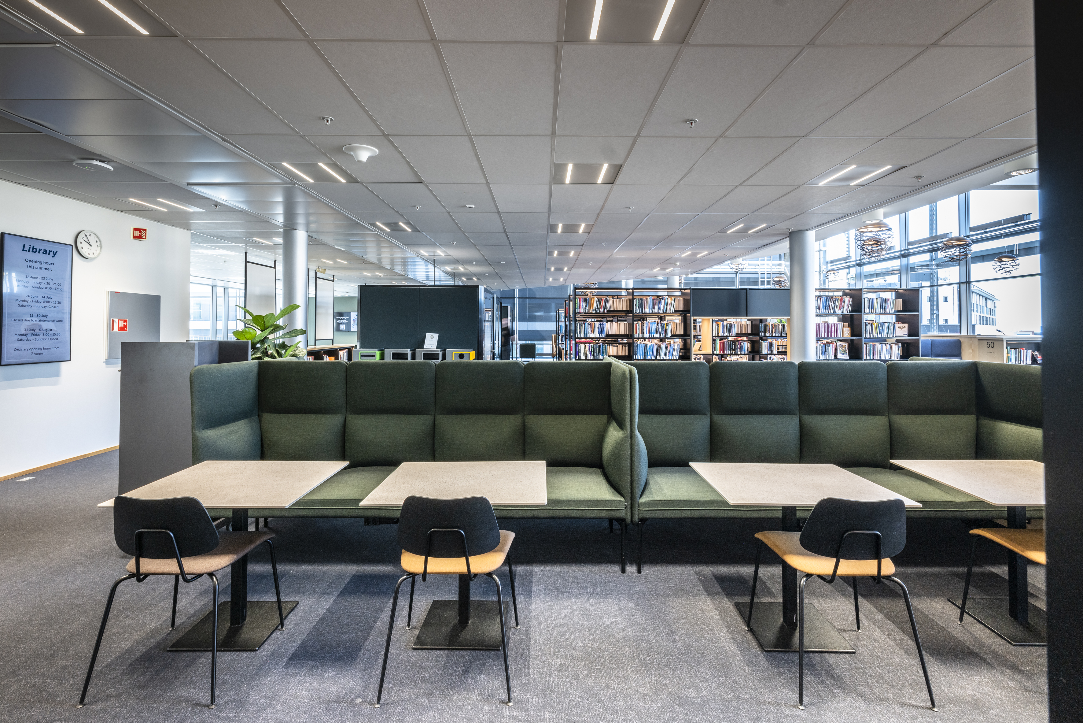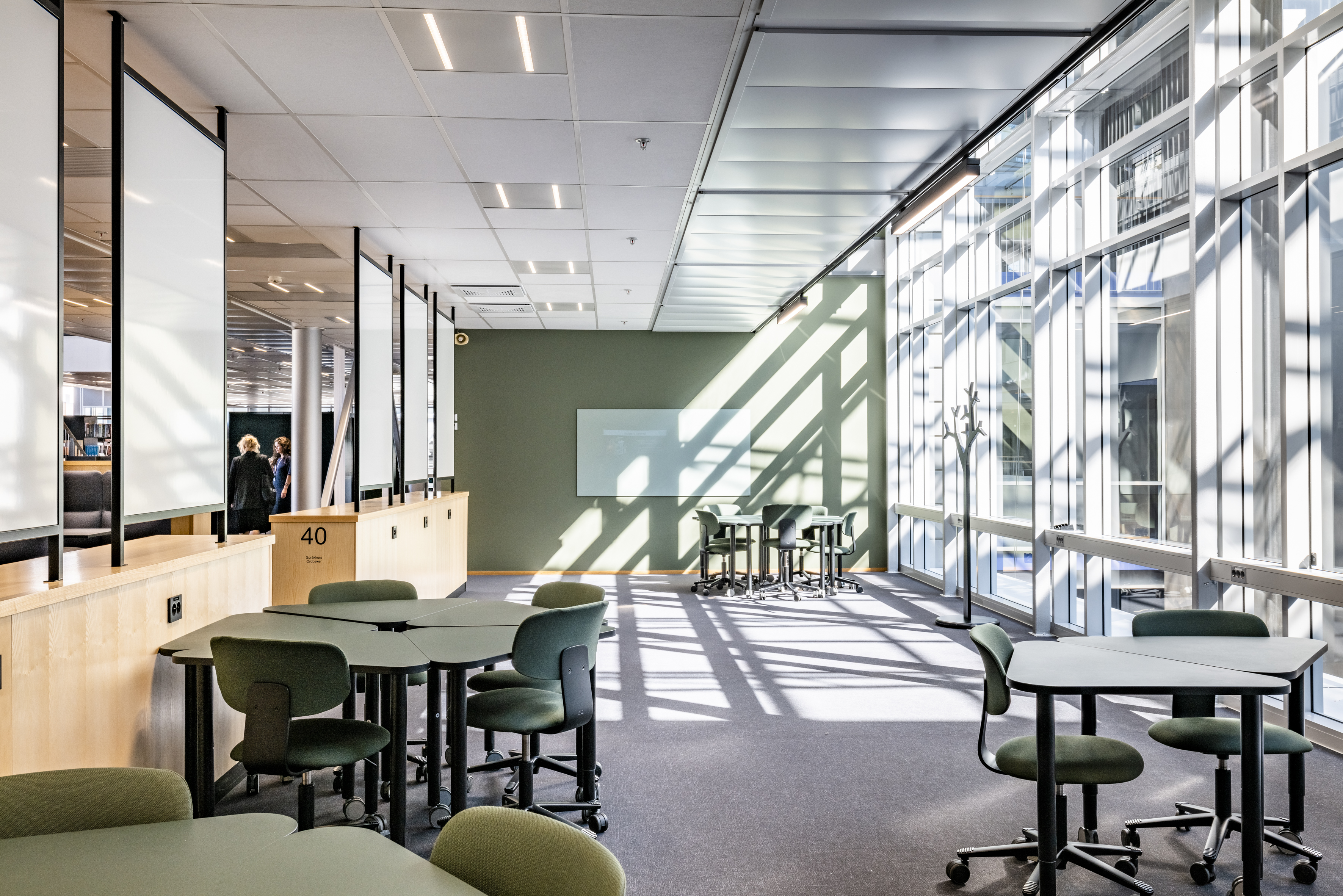 The library at BI Norwegian Business School is one of Europe's most modern research and study libraries. The library envisions itself as an inspiring learning space, which has led to meaningful dialogues and relationships between students and staff, inspiring one another. The students themselves have played a significant role in designing the space, focusing on noise reduction, collaboration, and concentration.