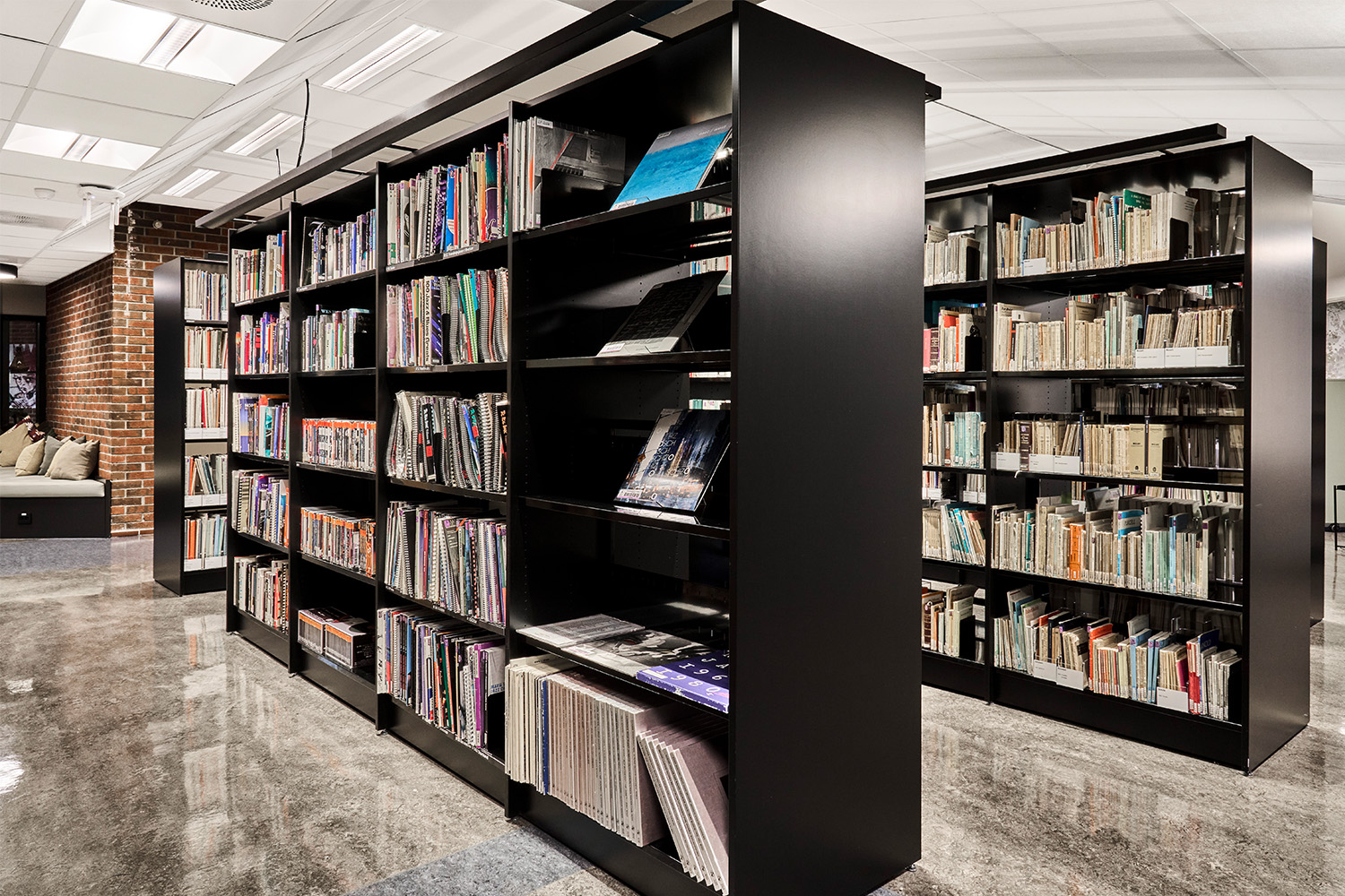 After several months of intensive renovation work, the library reopened in November 2020 in modern and open spaces, adapted to an active and flexible study environment. There is a particular emphasis on social zones, group workspaces and special rooms. BS Eurobib in Norway has been responsible for supplying the shelving systems, which in 2022 were supplemented with even more furniture and shelves with tiltable magazine racks with space for storing magazines.
