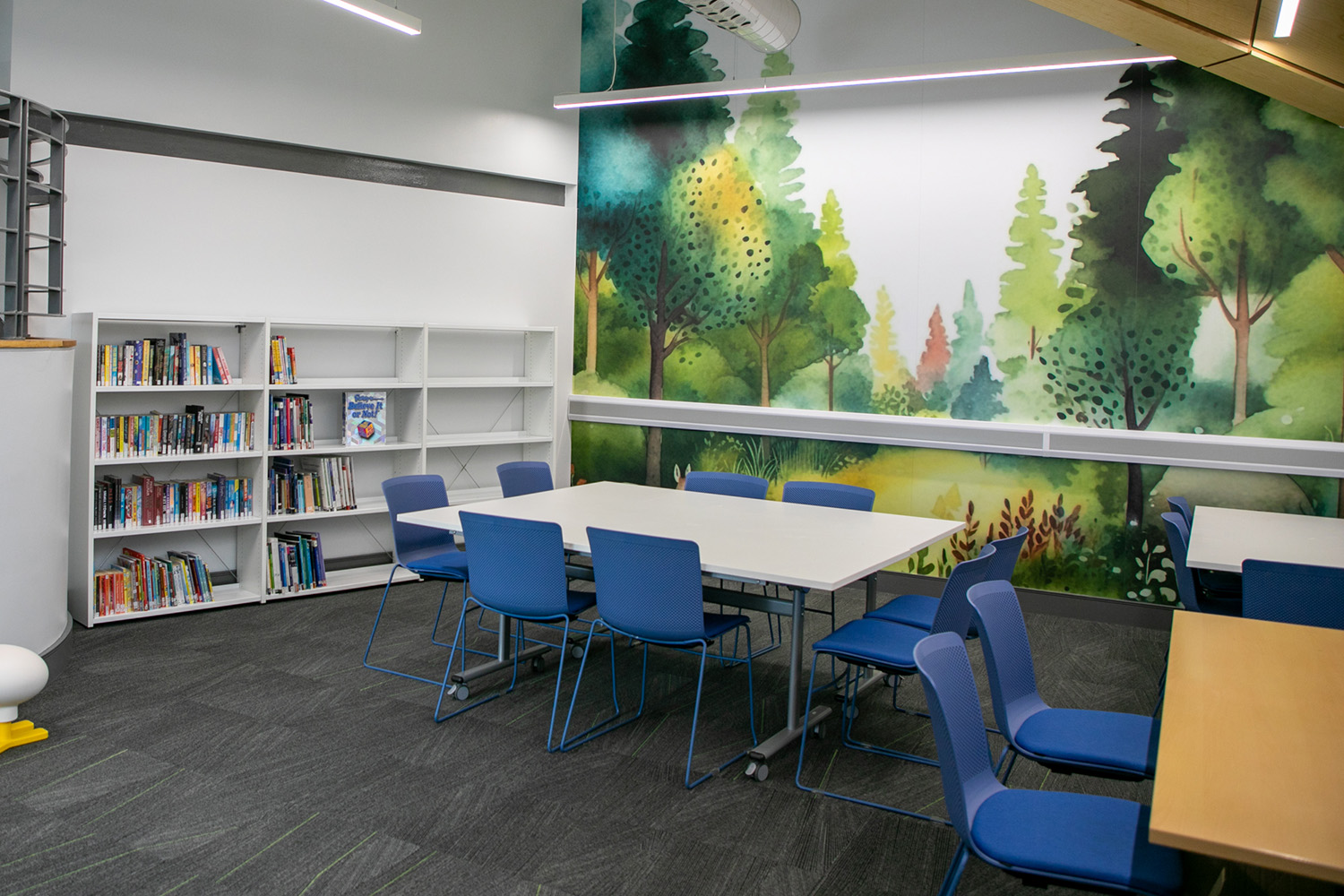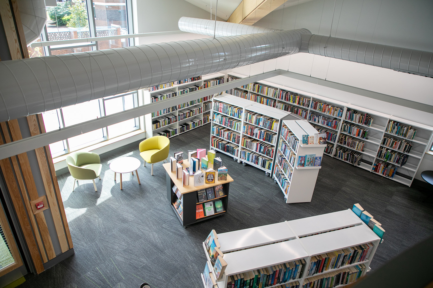 As visitors approach the library, they will immediately notice the modern and inviting look of the entrance. The addition of new automated doors, external paving, and beautiful planting adds a touch of elegance to the exterior.