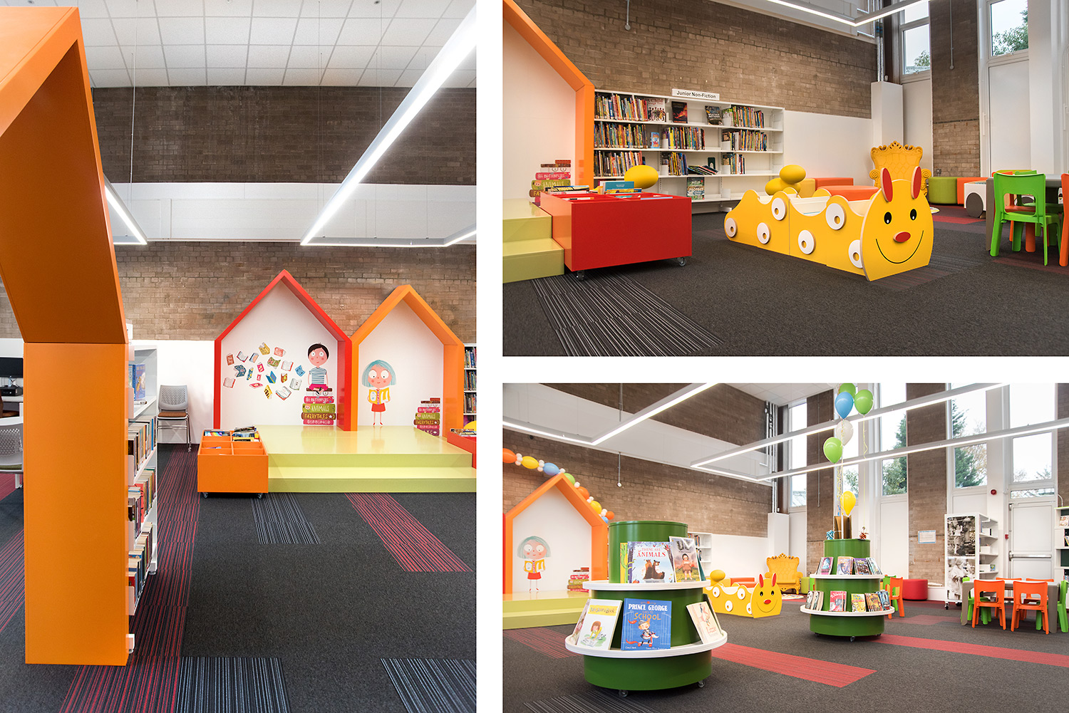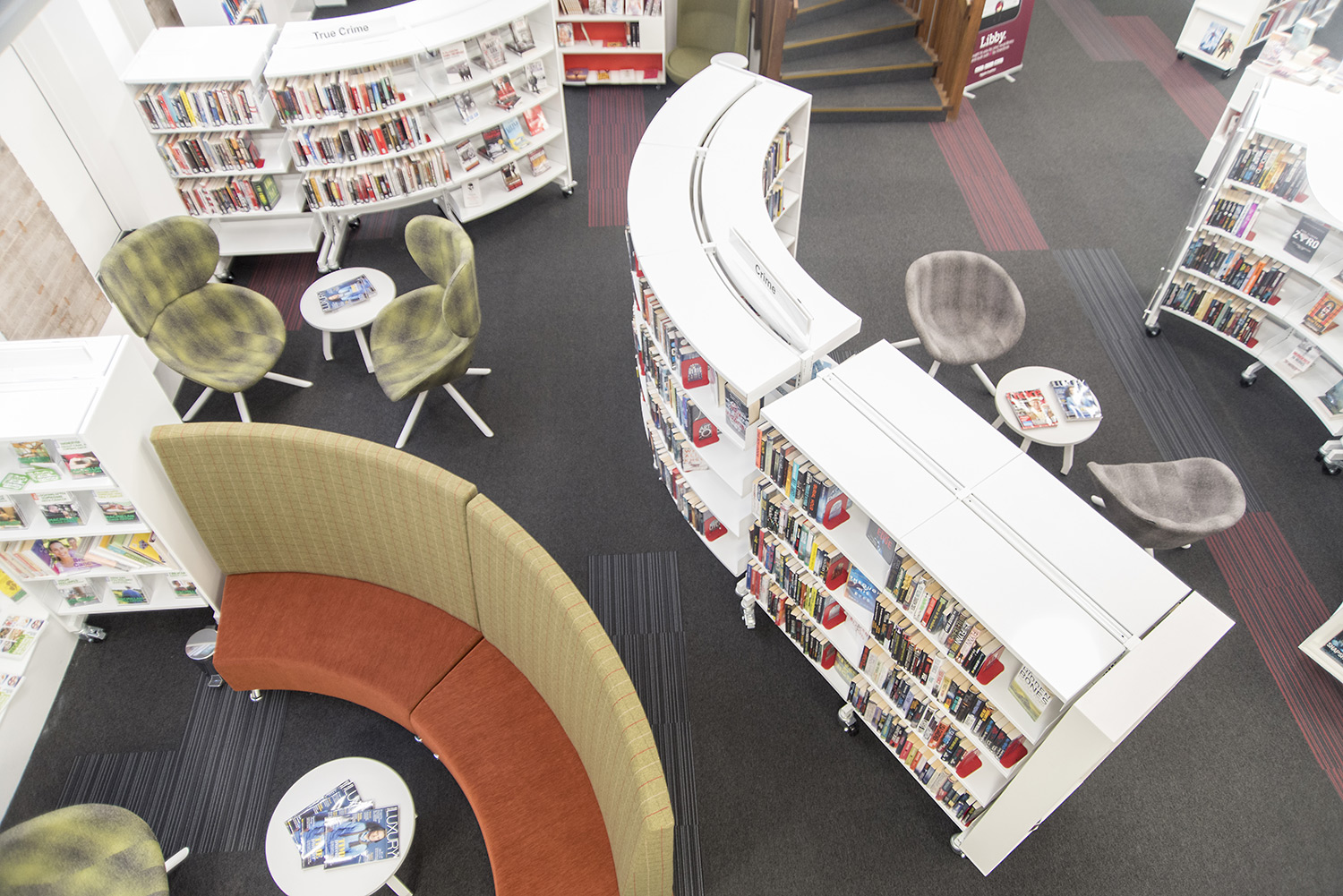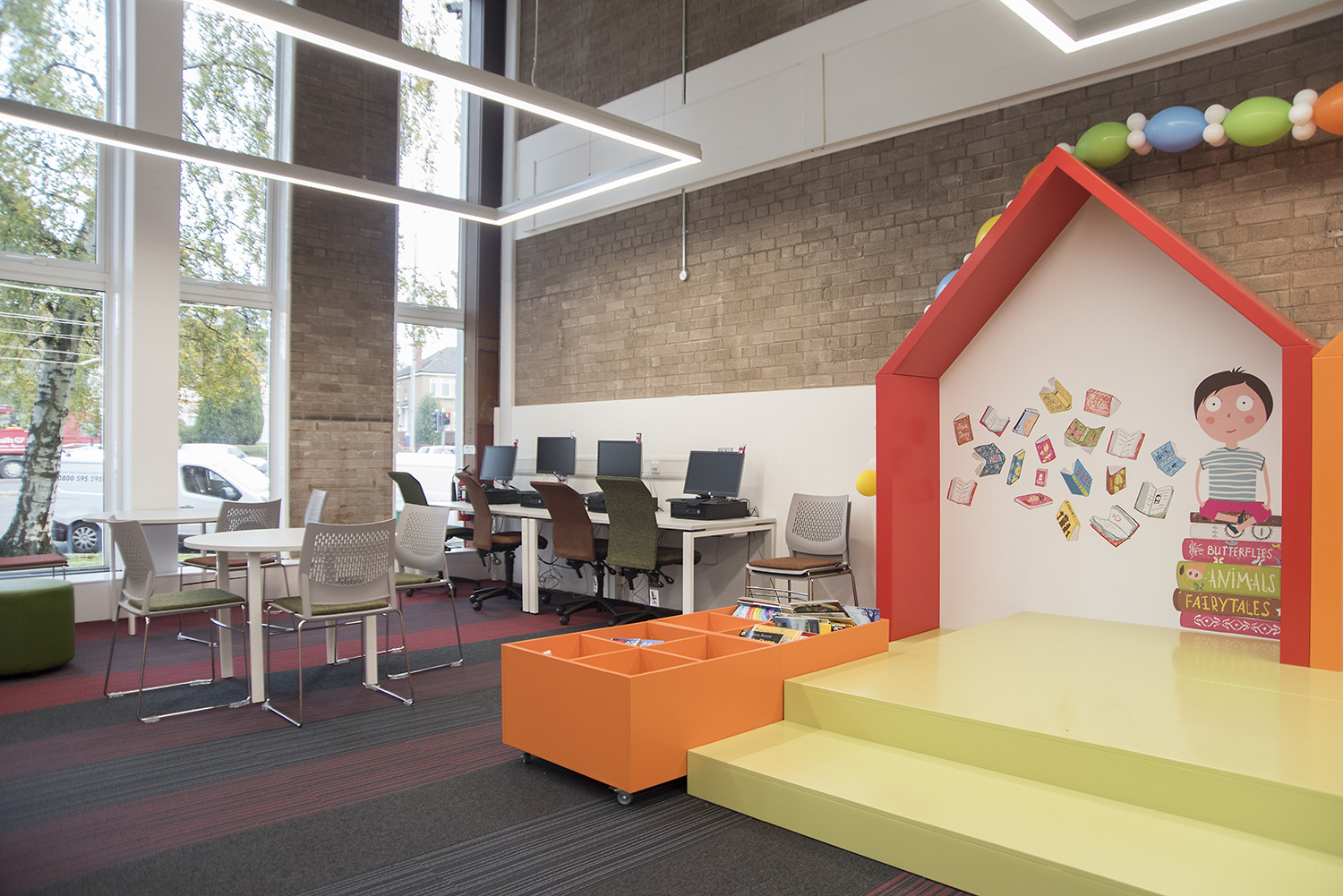 Thedesignconcept were excited to work on a local project and are proud of the finished result. The design includes our 30/60 shelving range on castors for complete flexibility, the children’s area has a statement story-telling chair and character furniture while soft, comfortable seating is available for other users who wish to make themselves comfortable and enjoy their new surroundings.