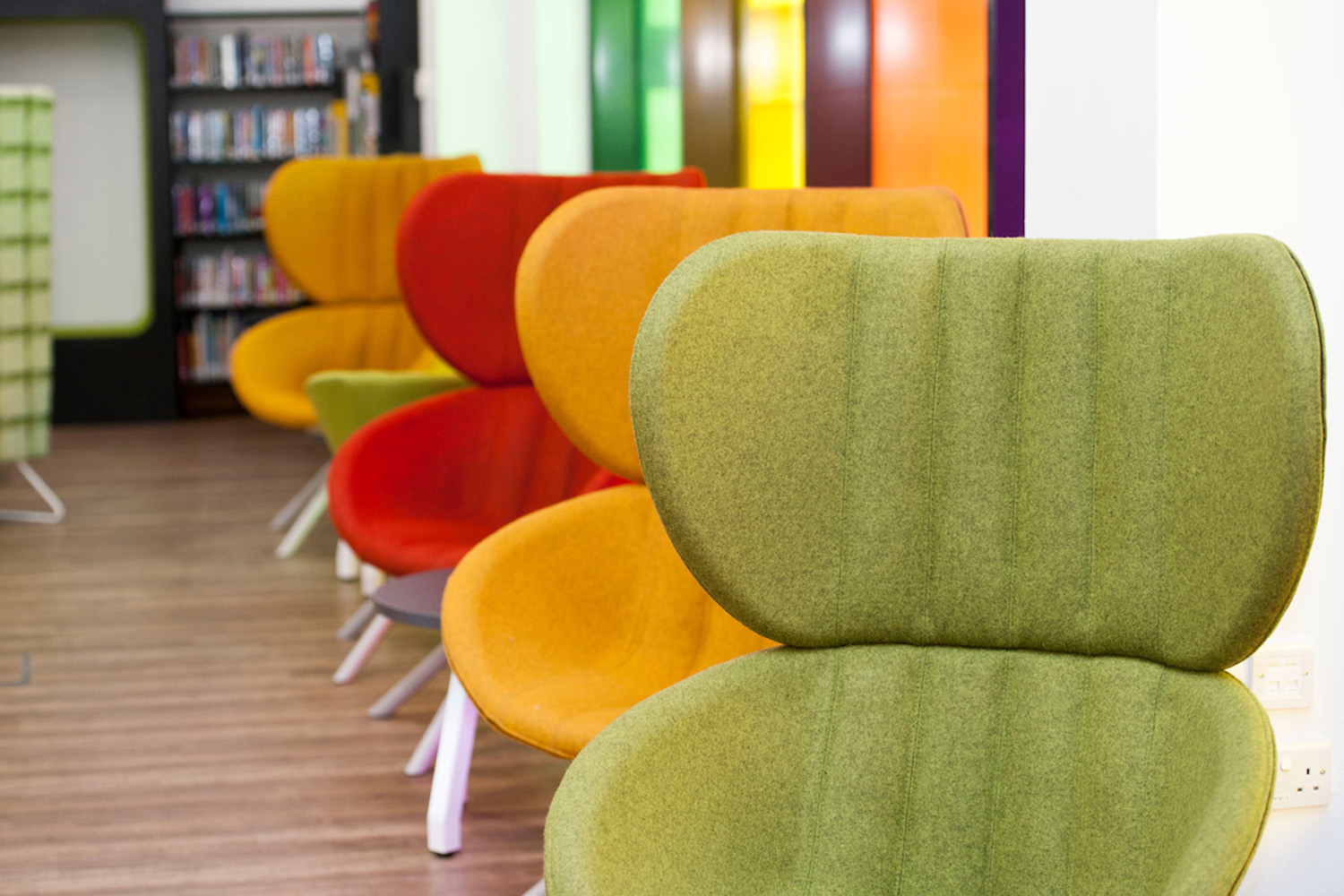 Bright colours and an incredible Children’s area give this library an undeniable WOW factor.