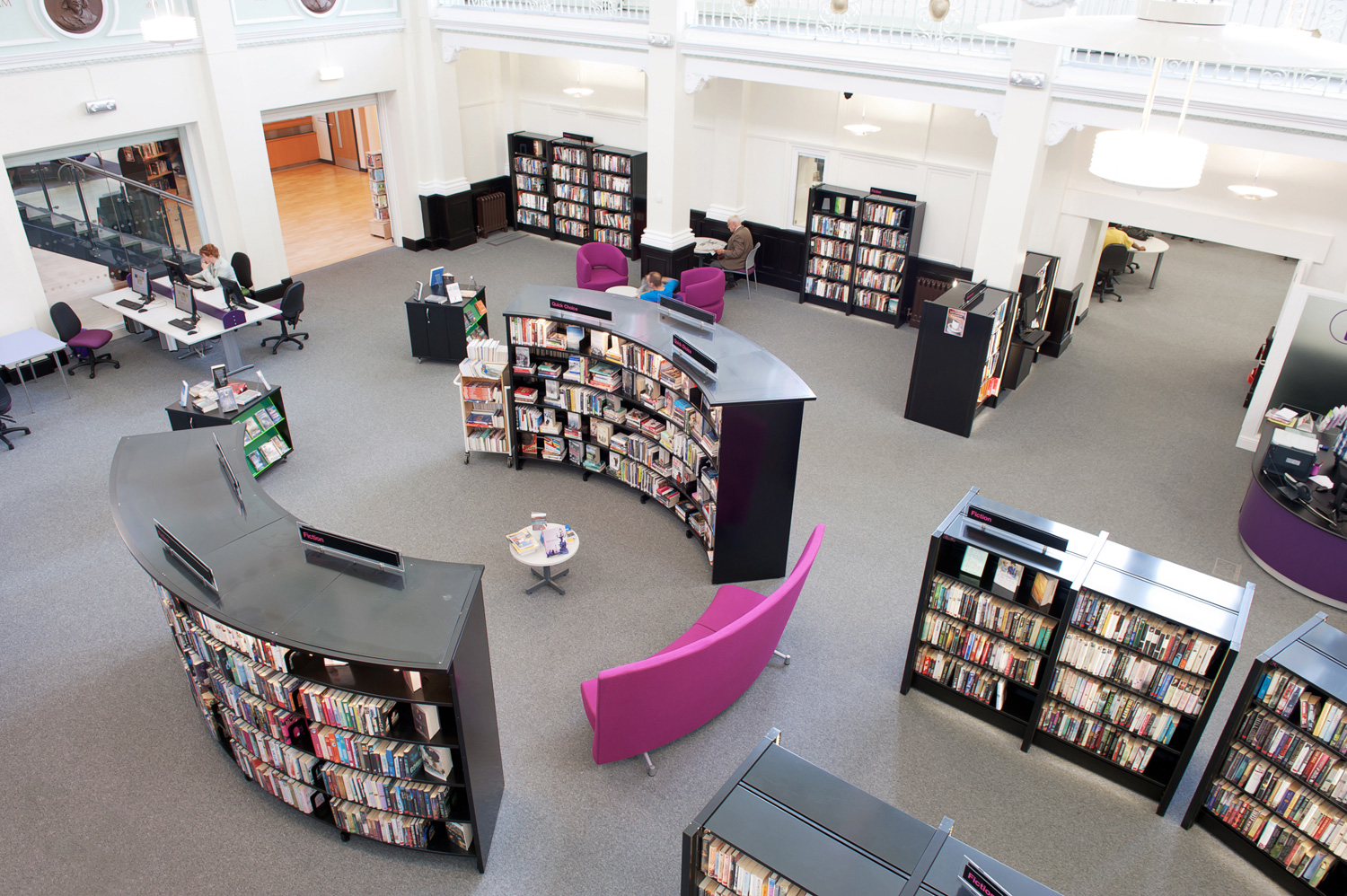 The library restoration works have resulted in brighter, more welcoming space for all users and visitors. The shelving and furniture specified along with the colours selected have been carefully chosen to not only blend in with the wonderful period features of the building but to also offer the modern ambience that any new build library would strive to offer. Whether visitors to the library are on a journey of learning, exploration and discovery, or simply after some time, the newly refurbished Eccles library has got something for everyone.