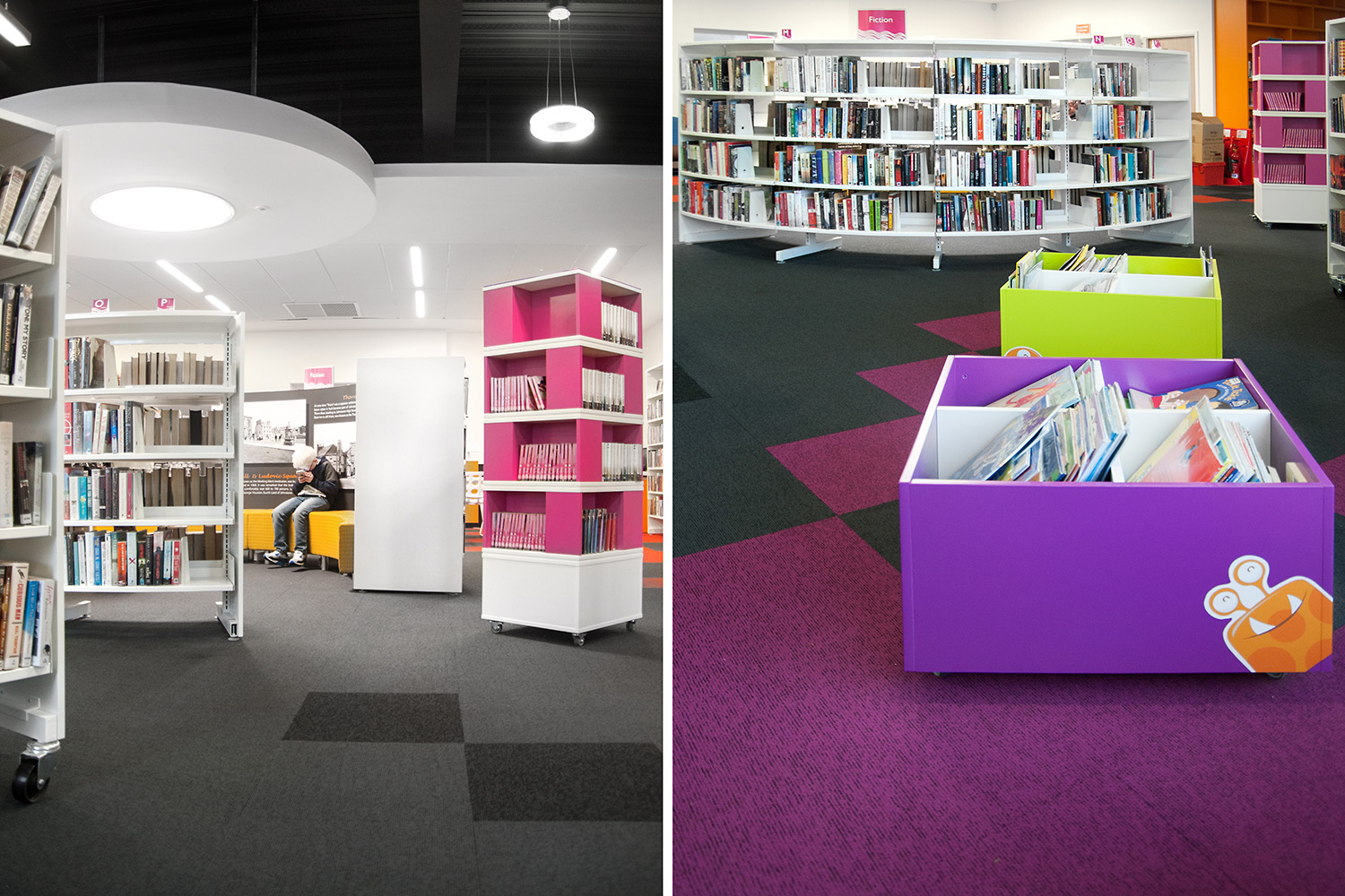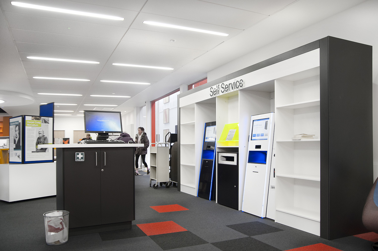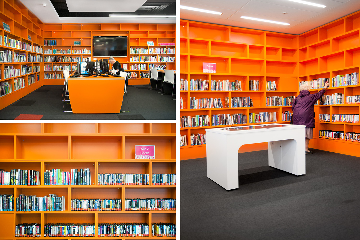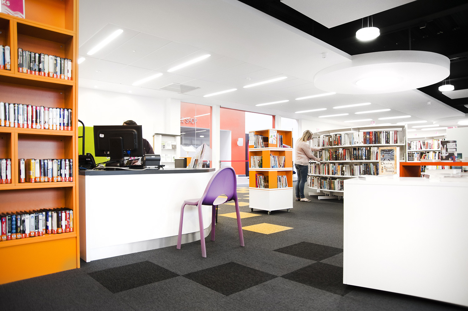 The Design Concept were instrumental in the design of this library together with the flooring, lighting and graphics to ensure we delivered a cohesive design. We worked closely with the architects Holmes Miller and members of the library staff to ensure we were able to meet the library brief.